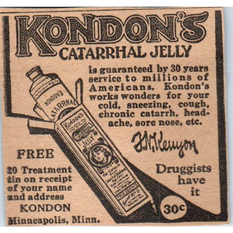 Kondon's Catarrhal Jelly Minneapolis MN 1923 Magazine Ad Clip AE1-3