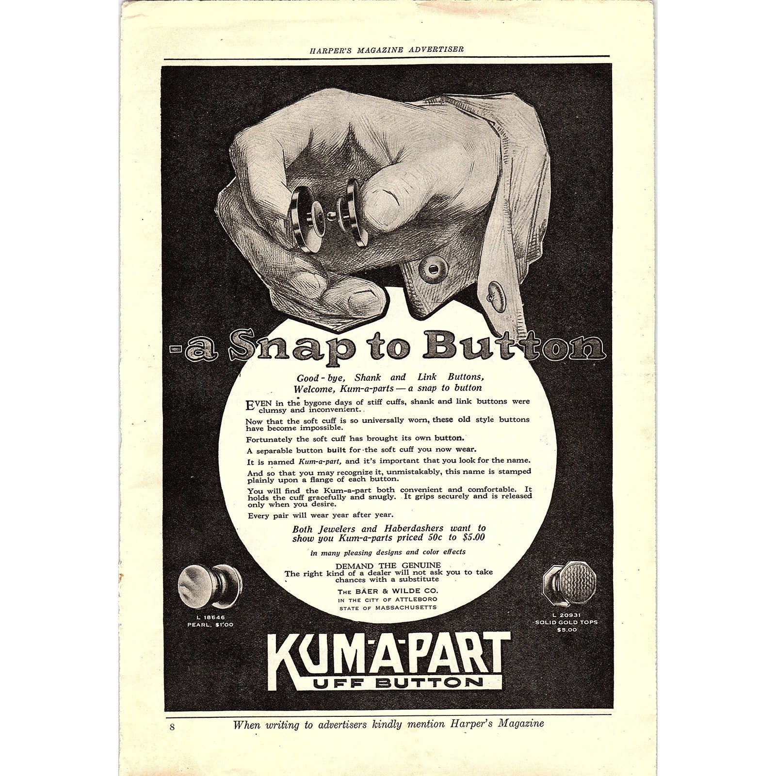 Kum-A-Part Kuff Button Baer & Wilde Co Attleboro MA c1920 Ad AF8-7