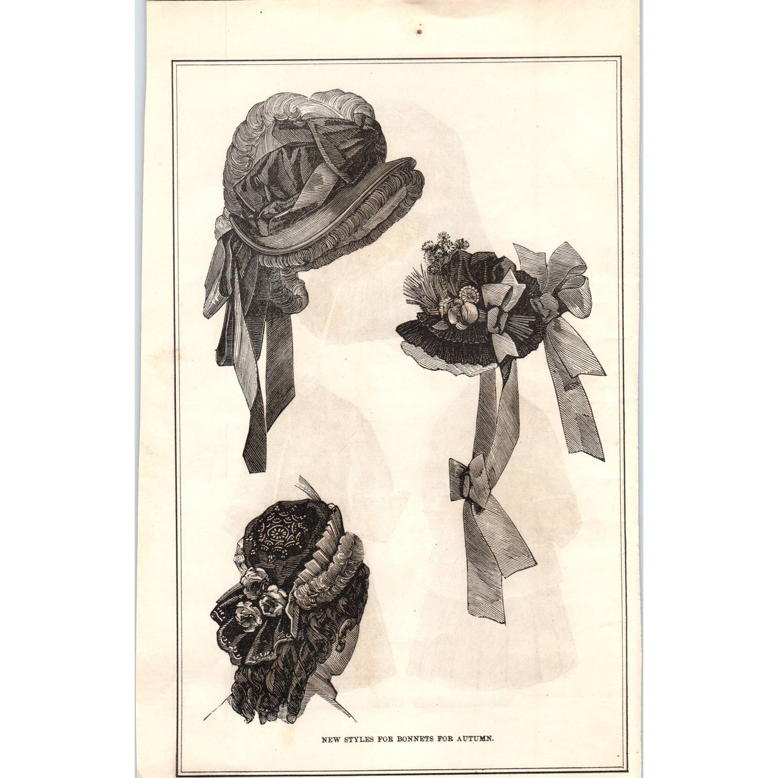 Ladies' Bonnets New Styles - Victorian Fashion Plate 1878 Original Plate TJ7-L2