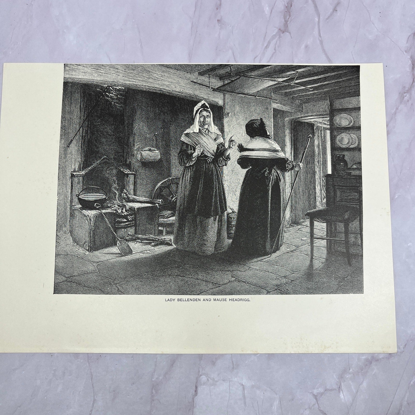 Lady Bellenden and Mause Headrigg Antique 8.5x11.5" Engraving Art Print V20