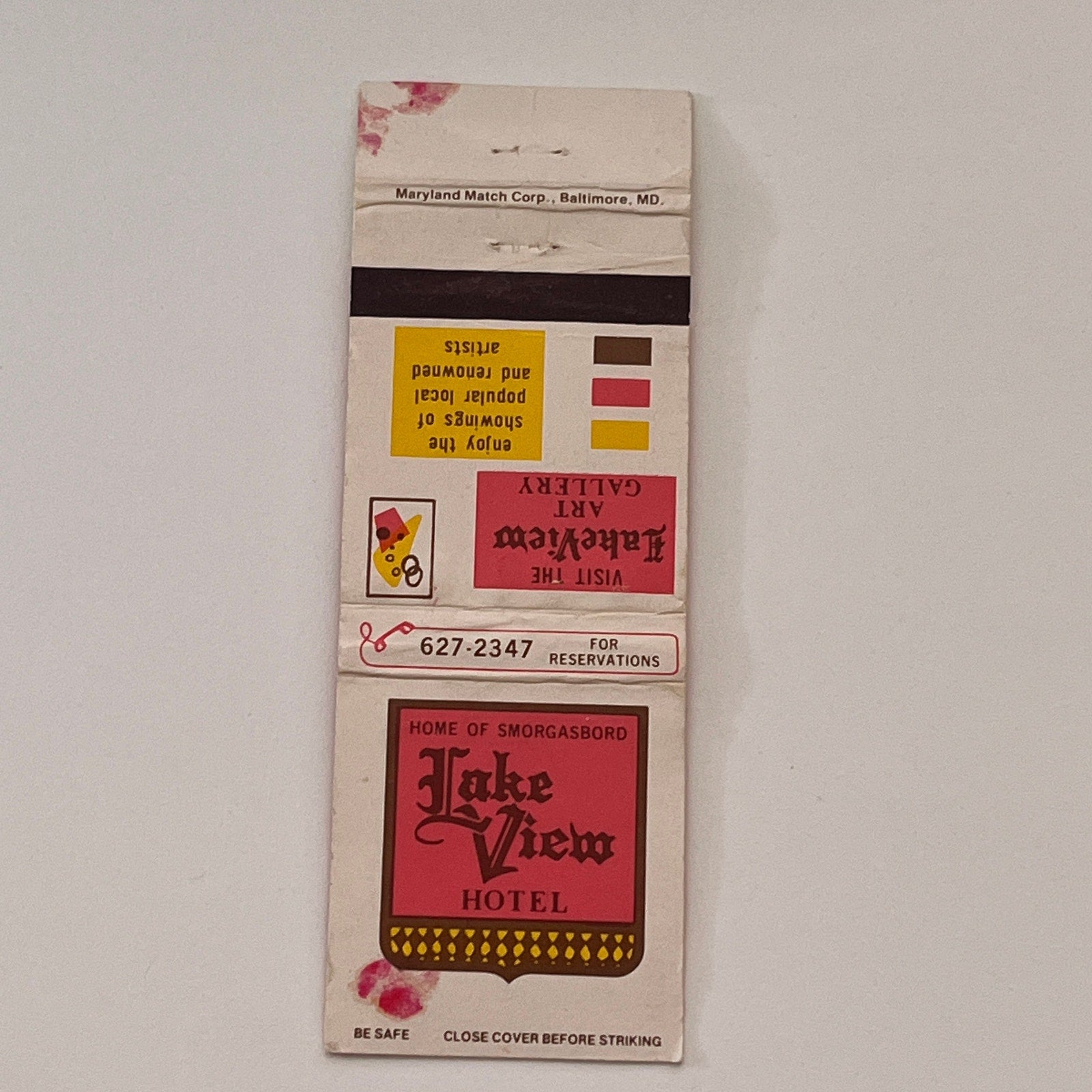 Lakeview Hotel Smorgasbord Art Gallery Vintage Matchbook Cover TB6-MB2-2