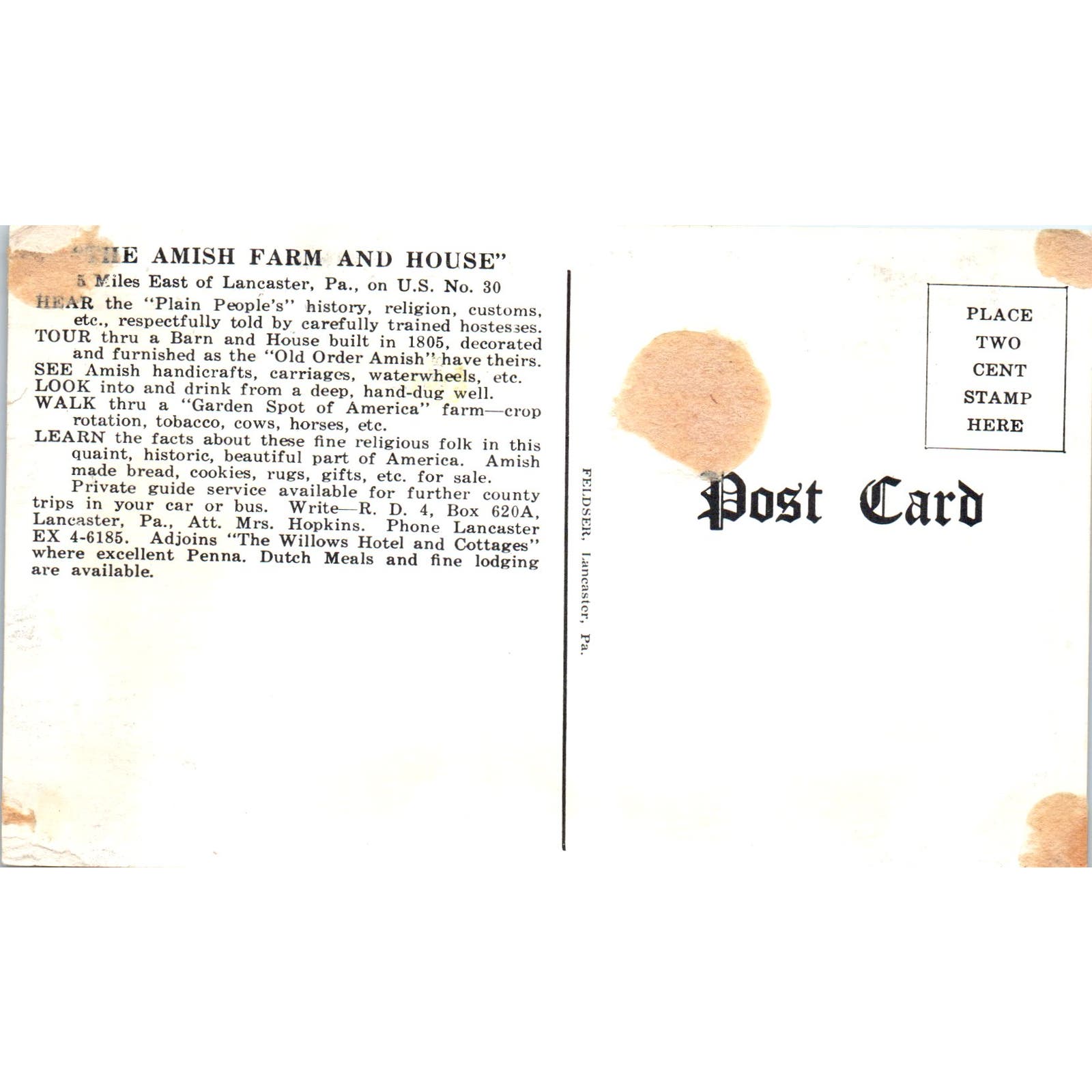 Lancaster Amish Farm & House Illustrated Pennsylvania Dutch Country Vintage Postcard PD5