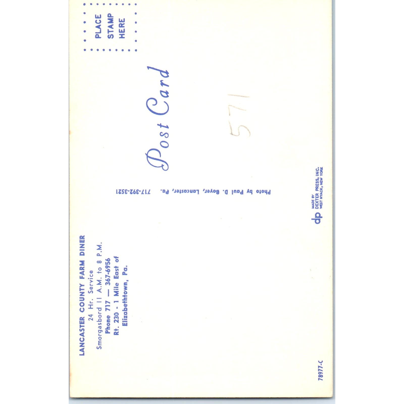 Lancaster County Farm Diner Elizabethtown Pennsylvania Dutch Country Postcard PD7