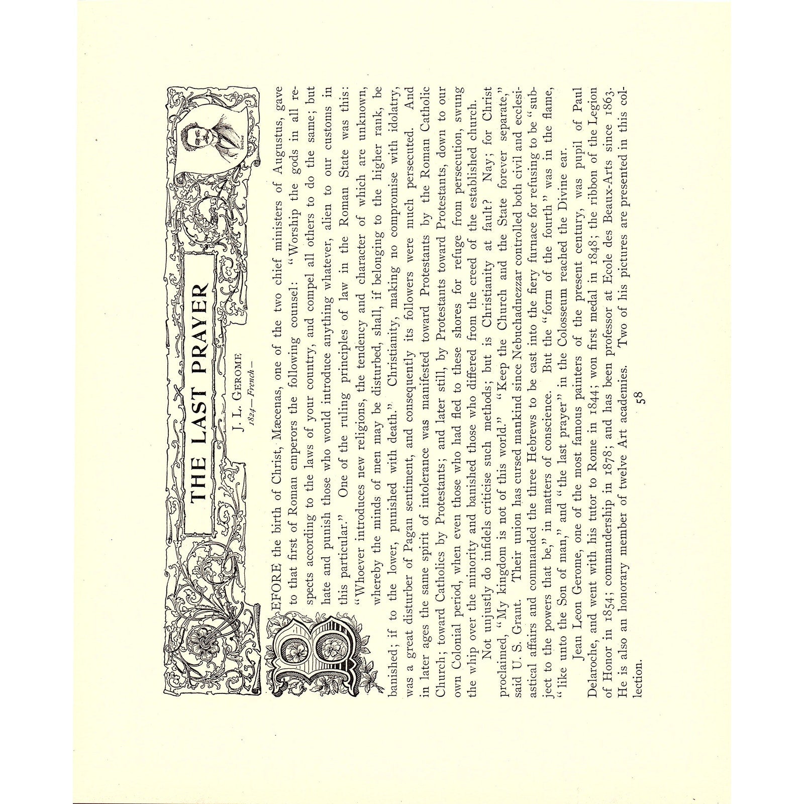 Measures approx 8.5x10.5. Original piece taken from the book - The Crown Jewels of Art by Franklin Edson Belden 1898. Reverse side has description of a different painting due to the layout of the book it was pulled from. There may be some light staining, tears, and/or other signs of wear and tear. See pics for condition.
