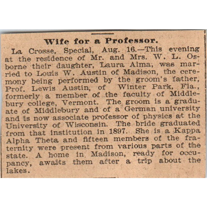 Laura Alma Married to Louis Austin La Crosse WI St. Paul 1898 Newspaper Ad AF2-Q3