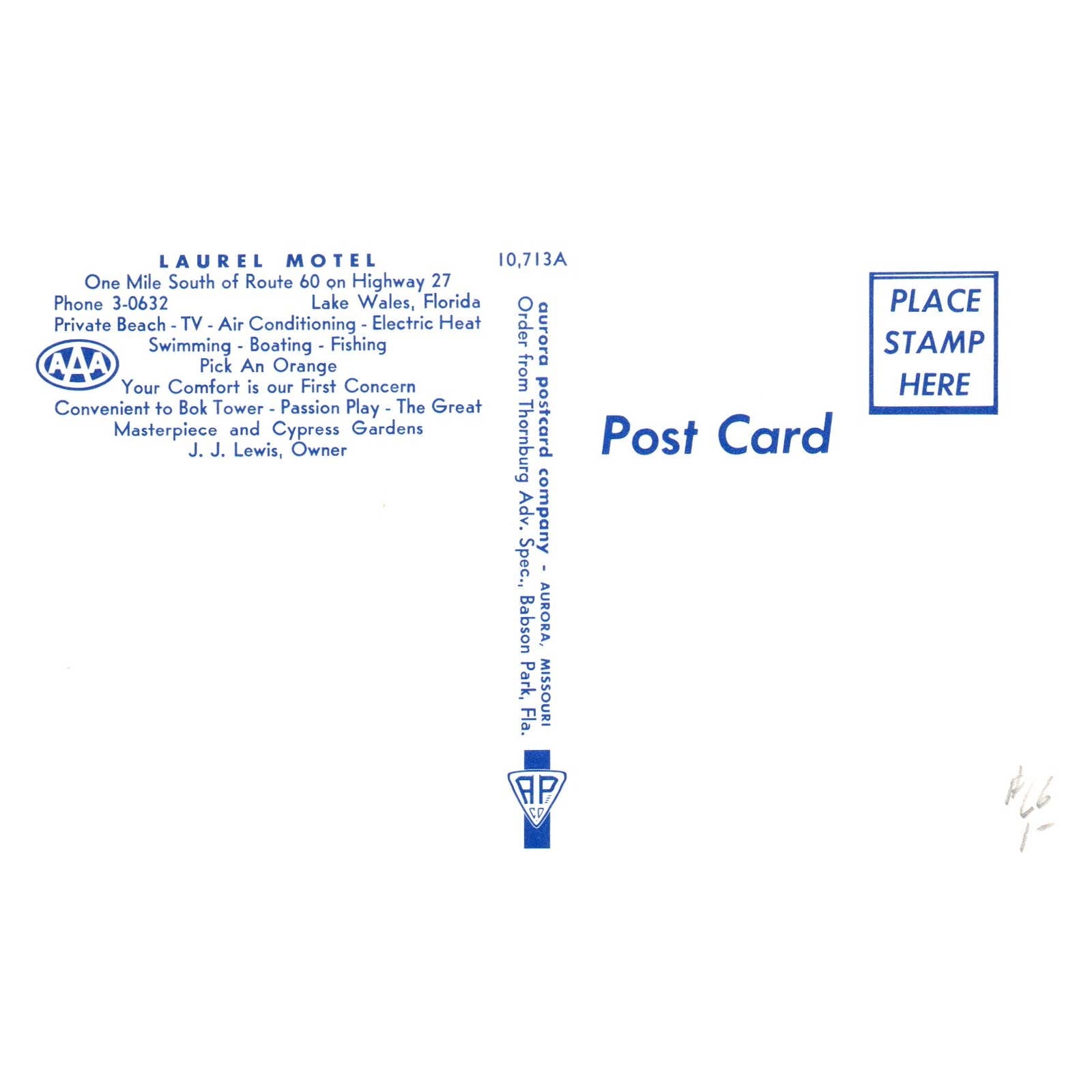 Laurel Motel Lake Wales Florida J.J. Lewis - Postcard TJ8-1