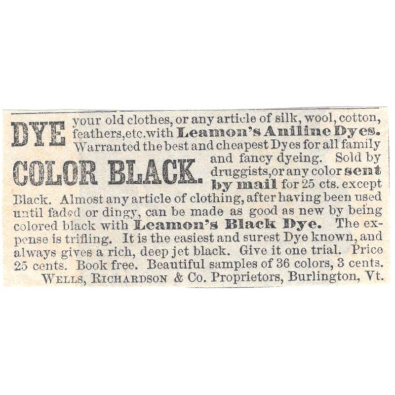 Leamon's Aniline Dyes Wells, Richardson & Co Burlington VT - Ad 1878 TJ7-L2-4