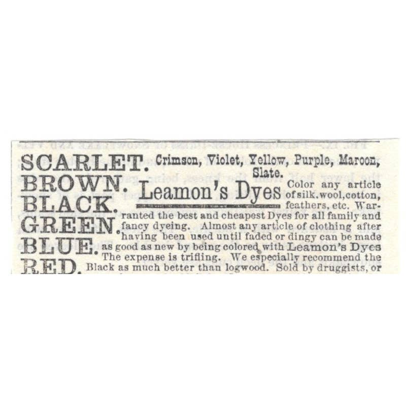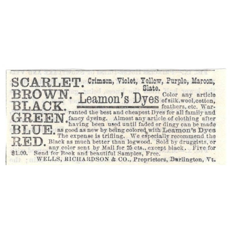 Leamon's Dyes Wells, Richardson & Co Burlington VT - Ad 1878 Original TJ7-L2-3