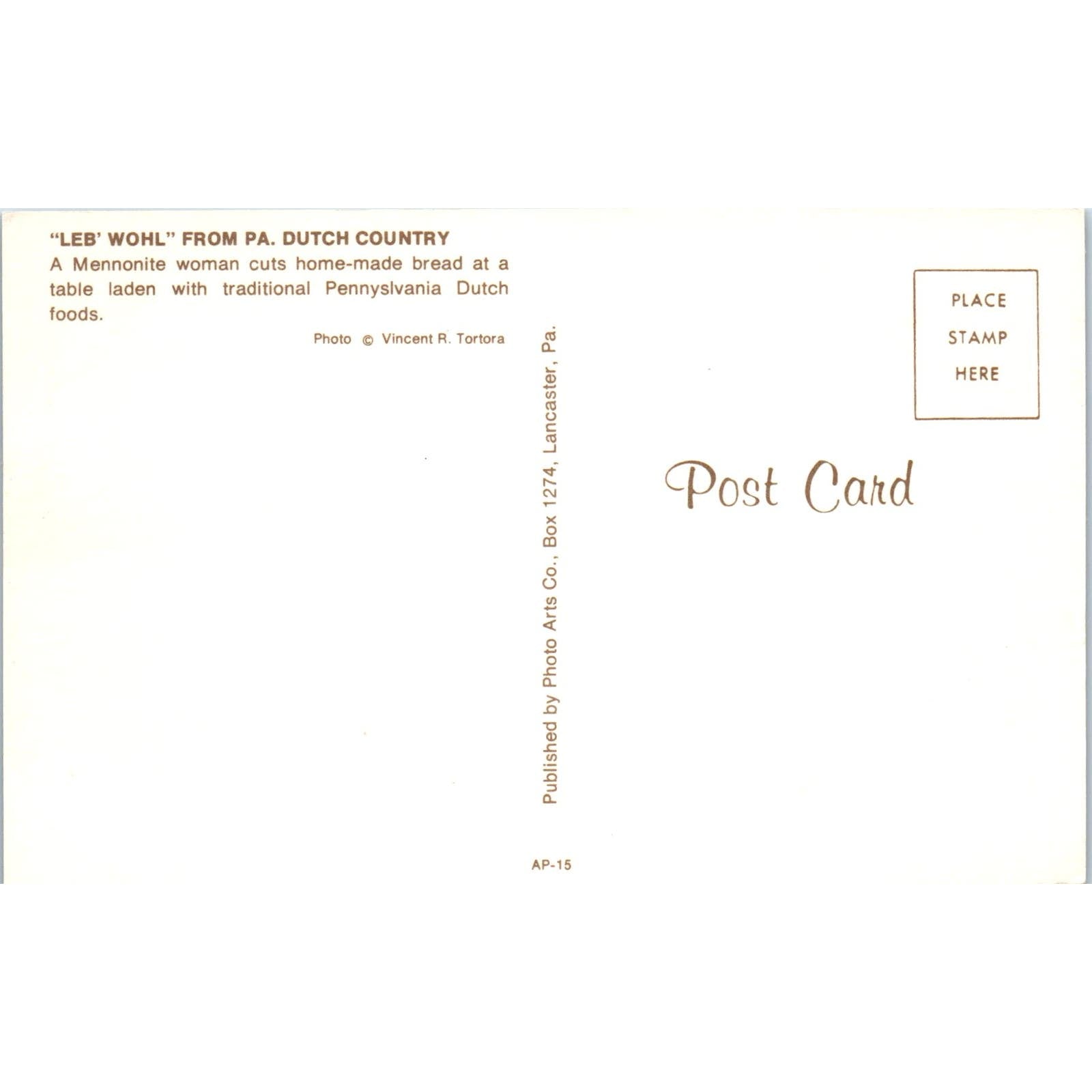 Leb' Wohl Mennonite Cutting Bread Pennsylvania Dutch Country Vintage Postcard PD5