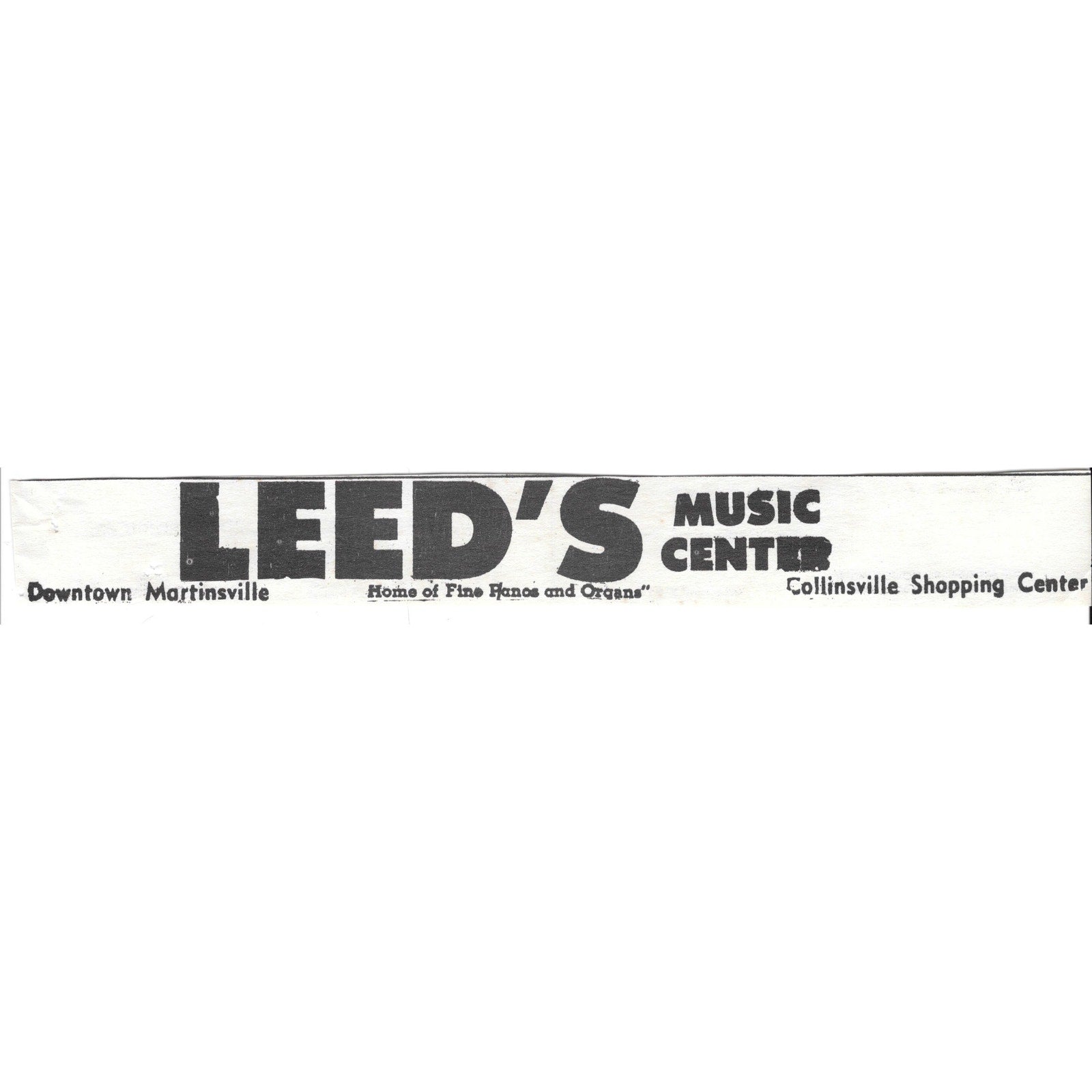 Leed's Music Center Downtown Martinsville, Collinsville VA 1960s Ad AG2-5