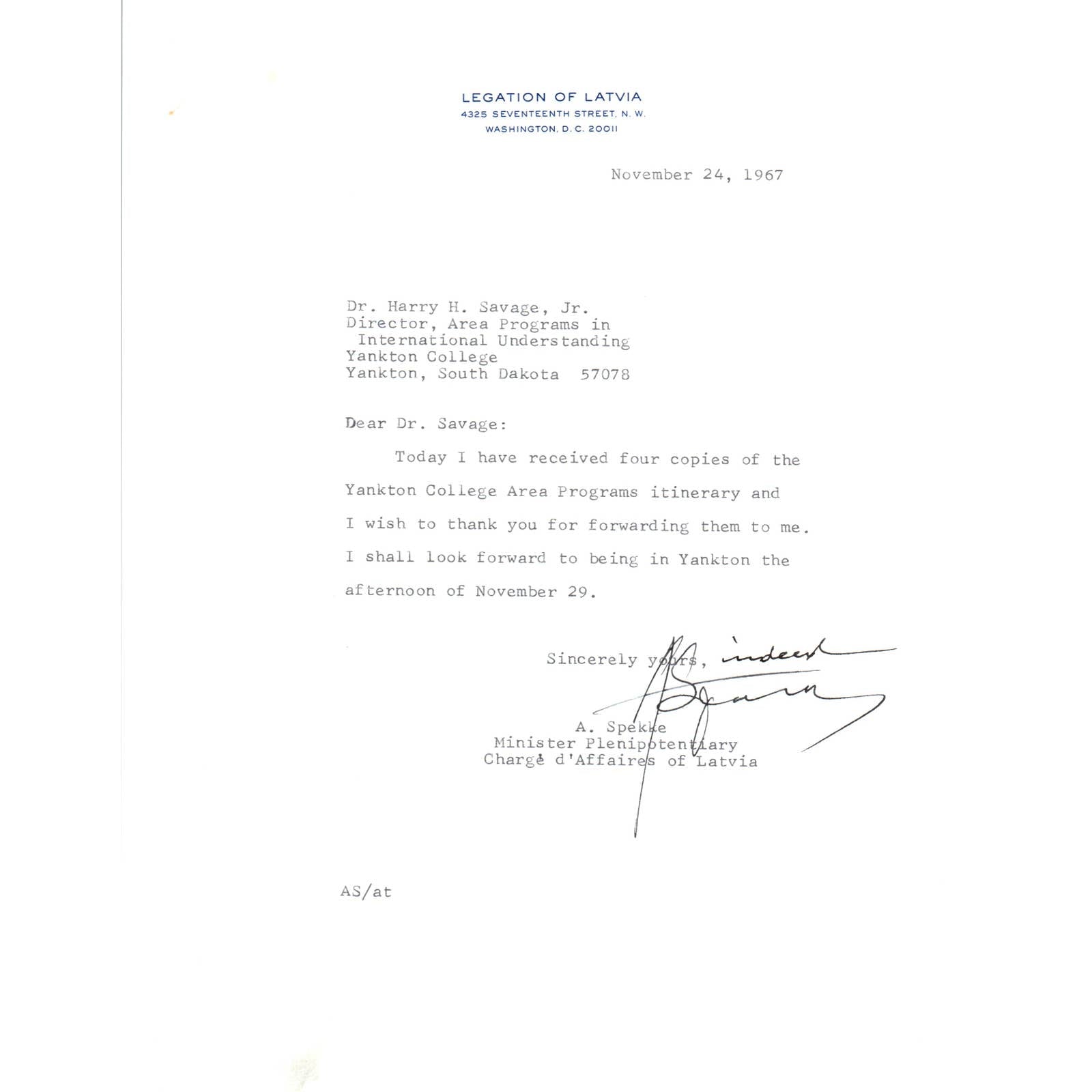 Legation of Latvia Official Letterhead Memo A. Spekke Nov 1967 TK1-P8