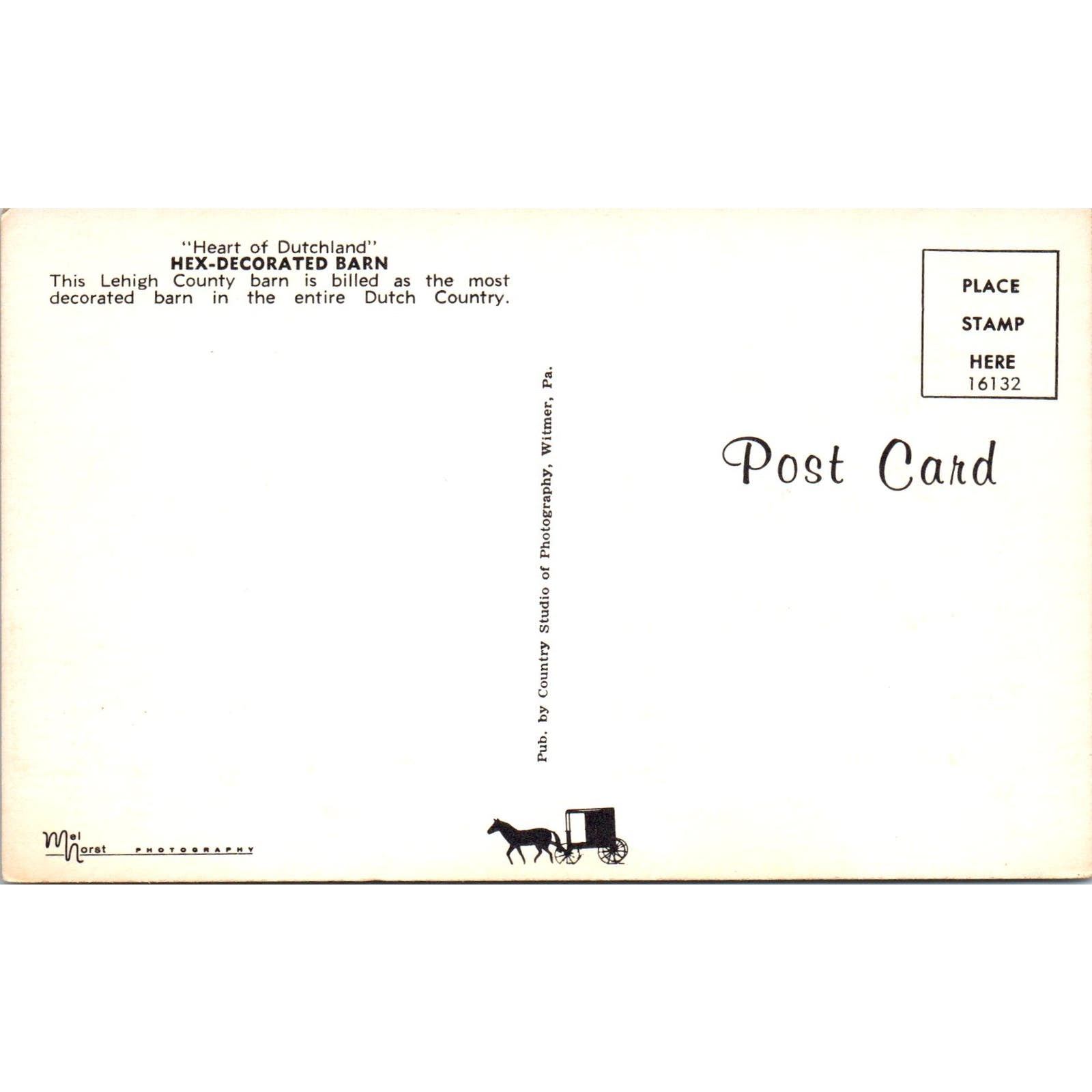 Lehigh Country Hex-Decorated Barn Pennsylvania Dutch Country Vintage Postcard PD4