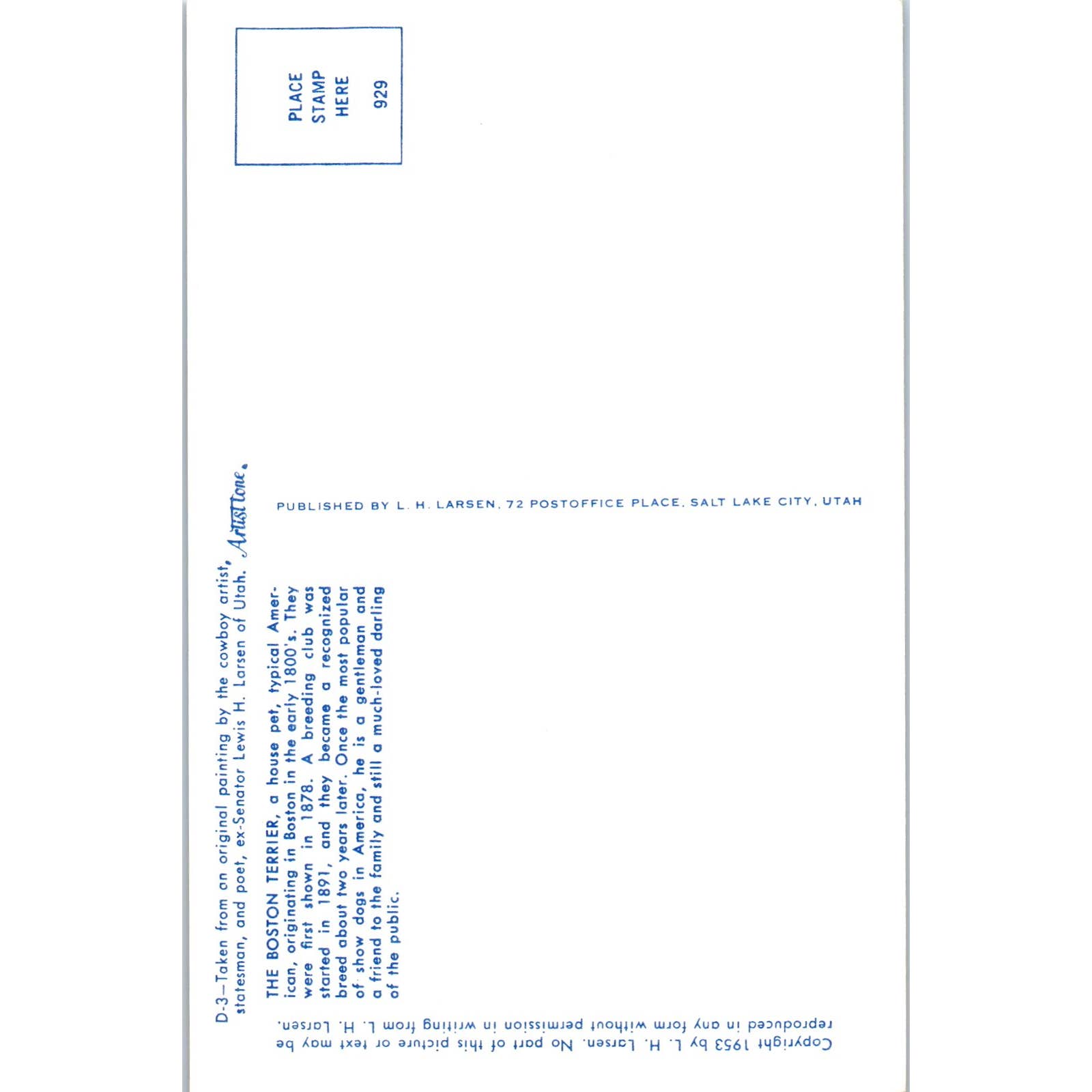 Lewis H. Larsen 1953 The Boston Terrier Painting Original Postcard TK1-27