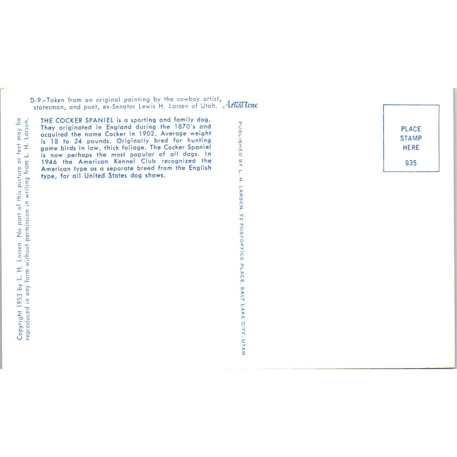 Lewis H. Larsen 1953 The Cocker Spaniel Dog Painting Original Postcard TK1-27