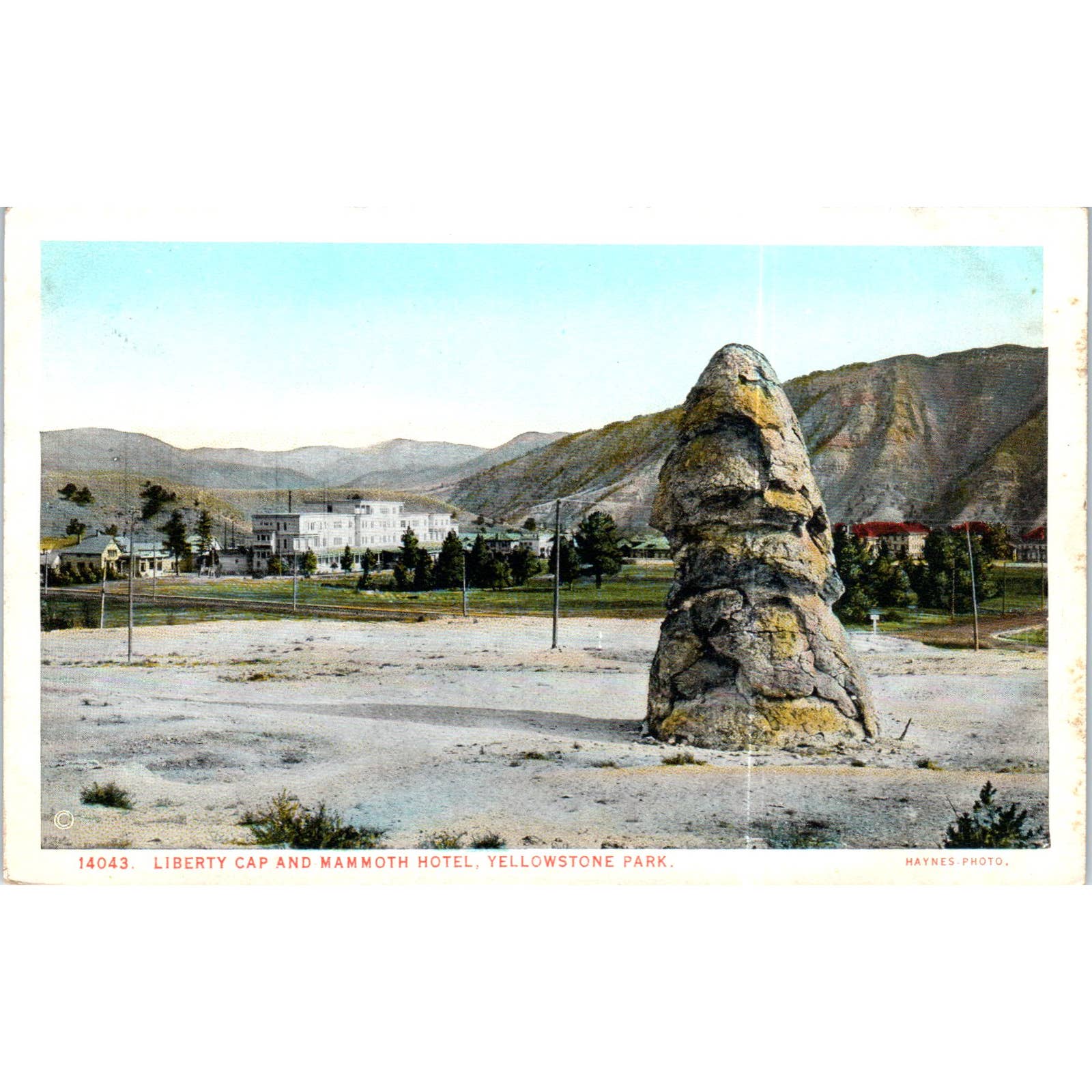 Liberty Cap and Mammoth Hotel Yellowstone Park Original Postcard TK1-P15