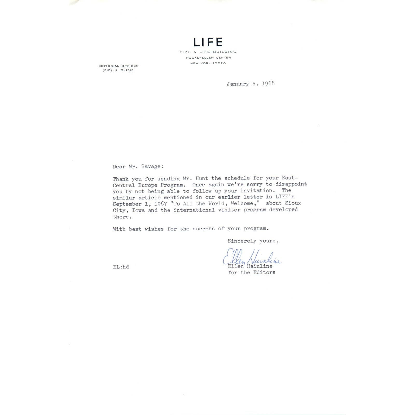 LIFE Time & Life Building Letterhead Memo Ellen Hainline 1968 TK1-P8