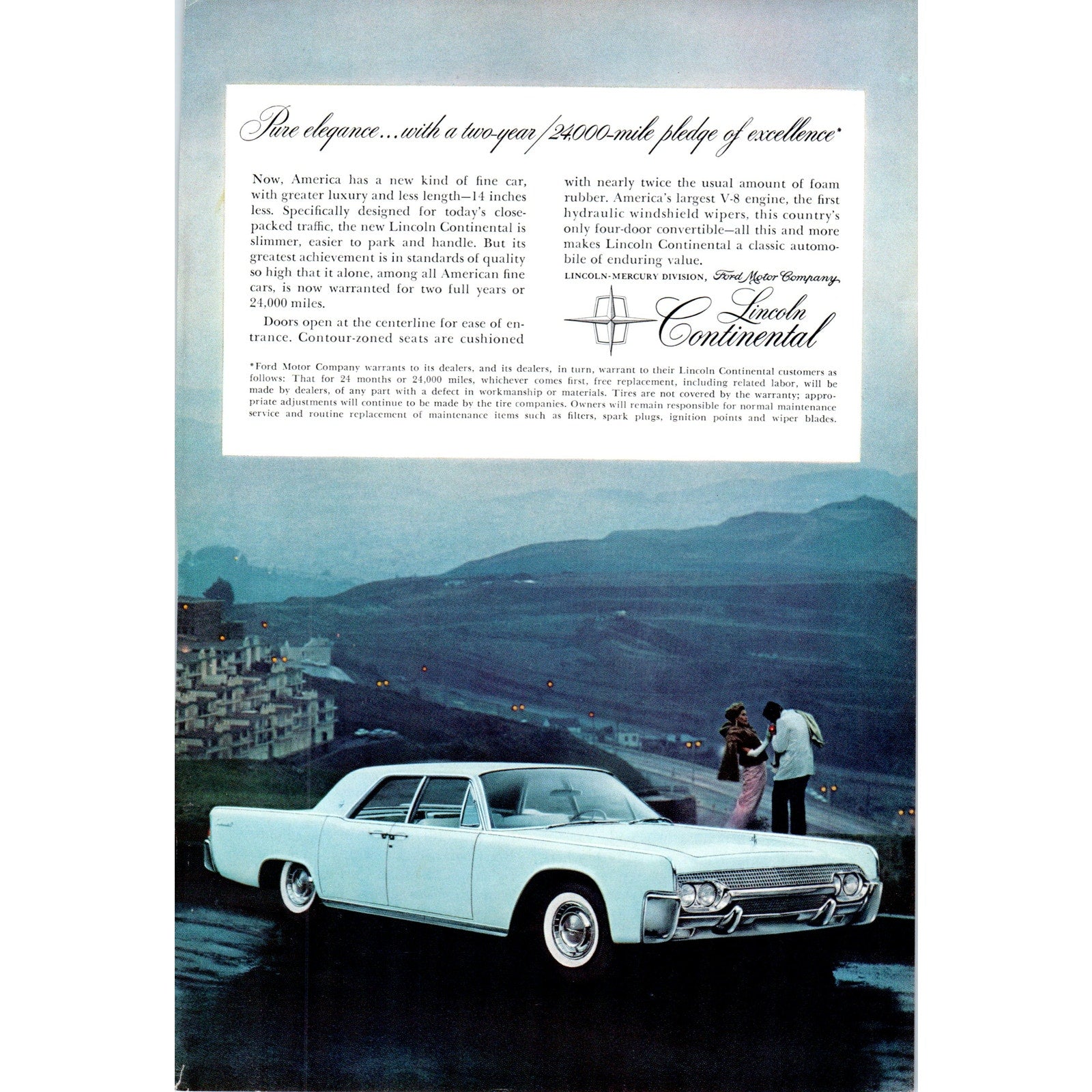 Lincoln Continental 24,000 Mile Guarantee Automobile - Vintage Magazine Ad D20