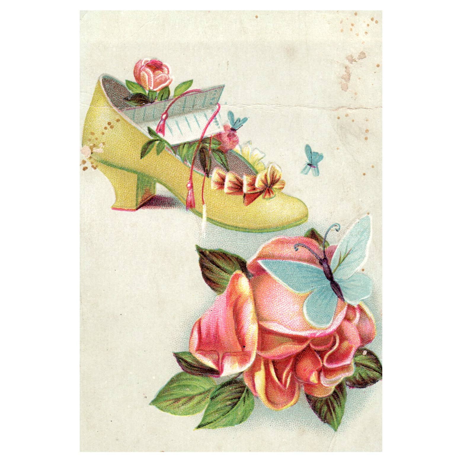 Lion Coffee Flowers Shoe Blue Butterfly - 1880s Victorian Trade Card TJ8-3