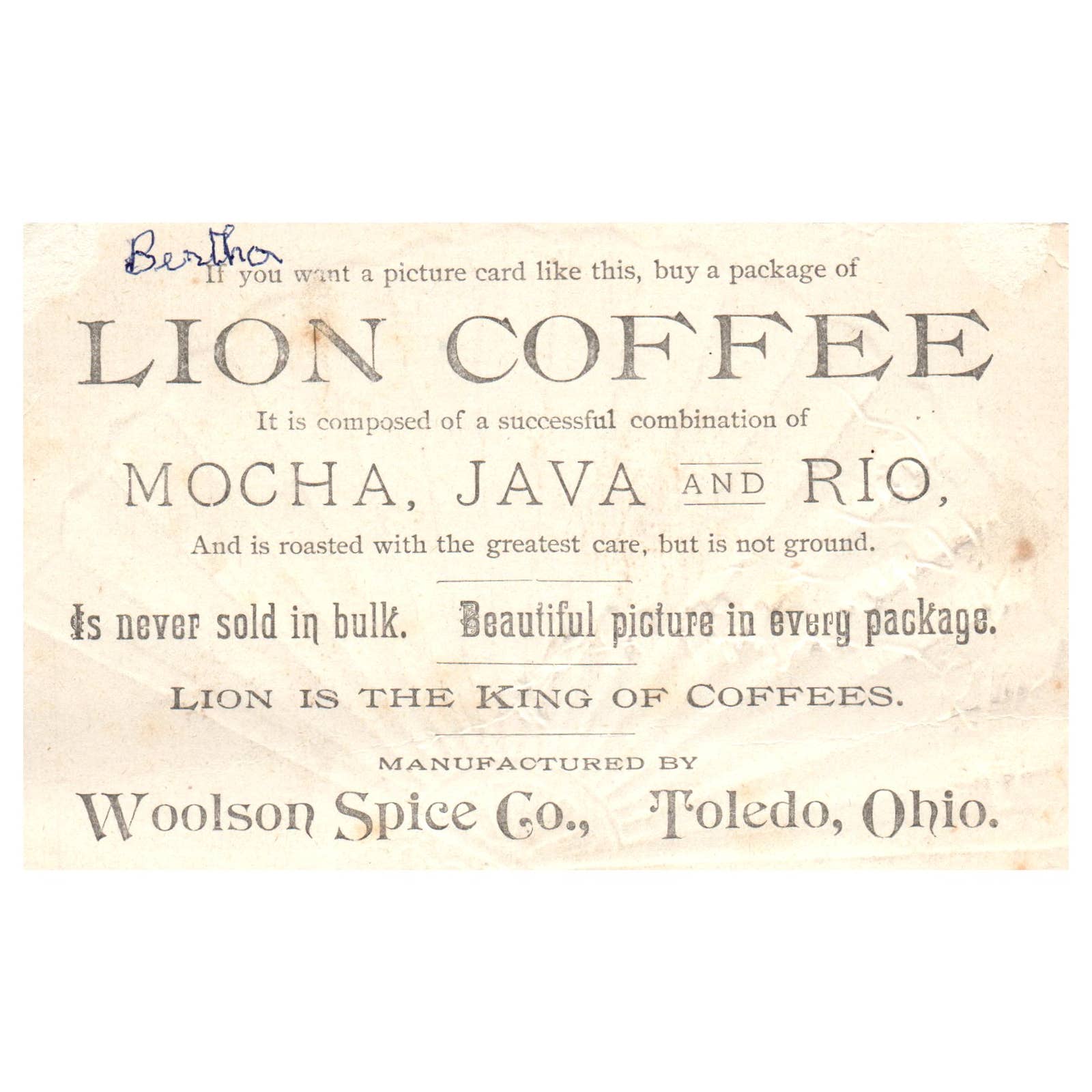 Lion Coffee Winter Scene Birds on Branch - 1880s Victorian Trade Card TJ8-3