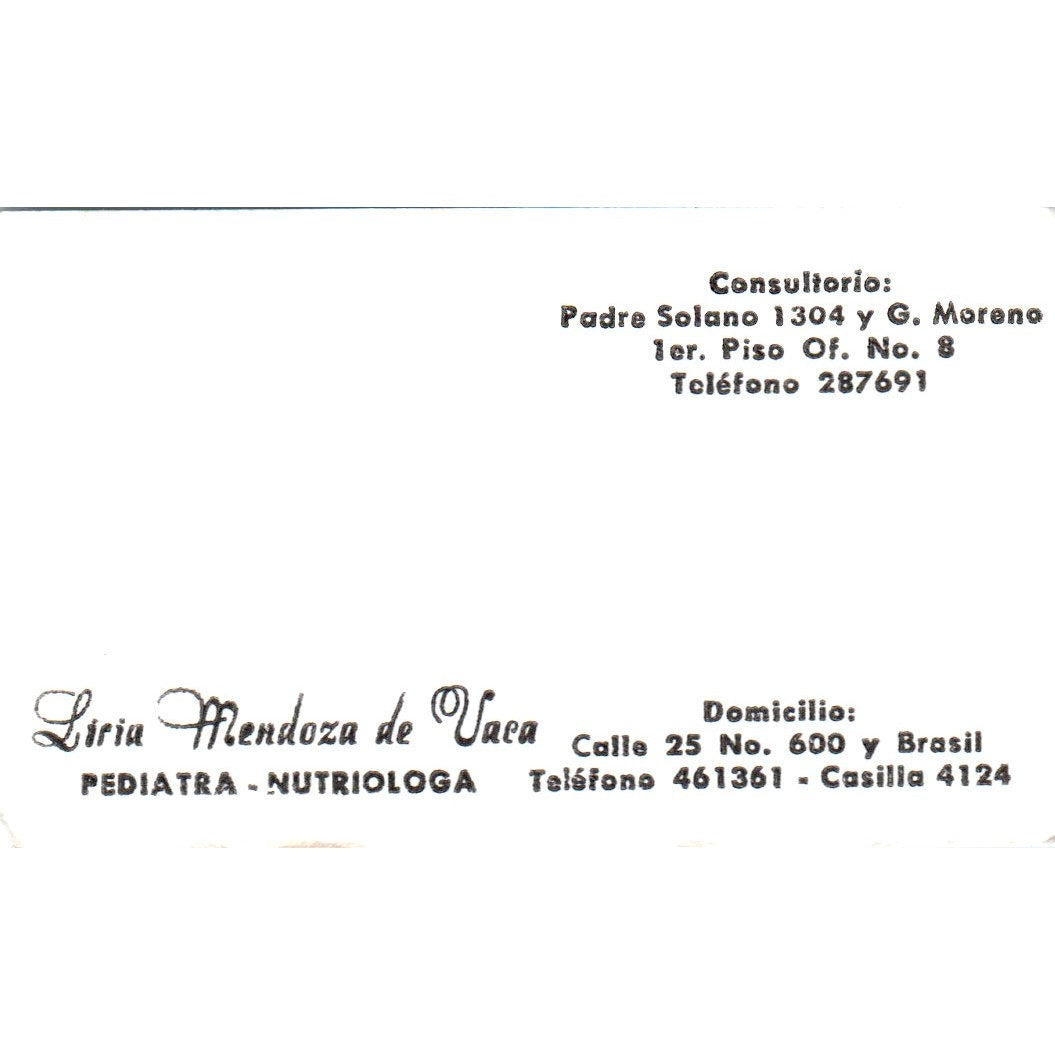 Liria Mendoza de Urca Pediatra Nutriologa Casilla Vintage Business Card SD8-B16