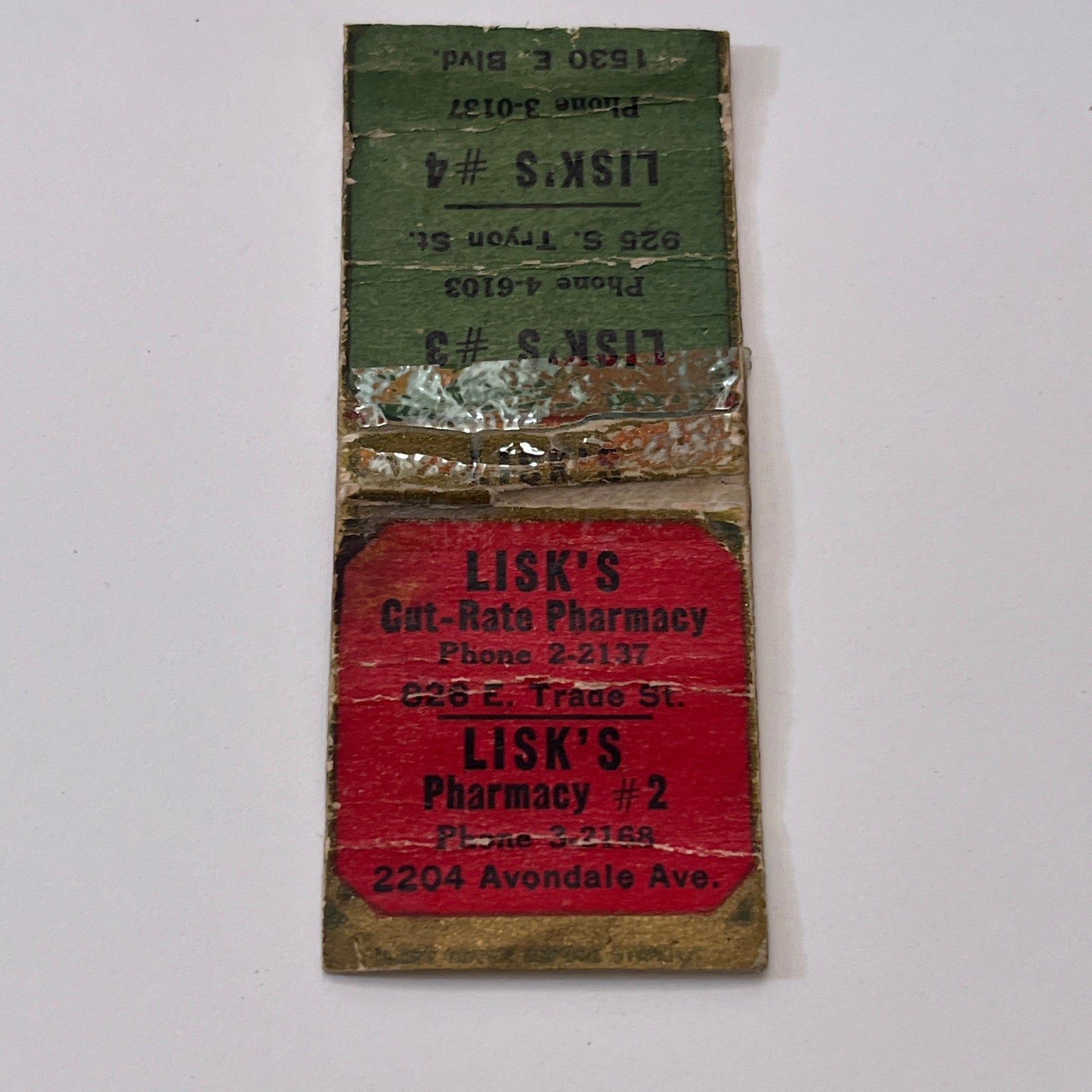 Lisk's Cut Rate Pharmacy Vintage Matchbook Cover TB6-MB1-15