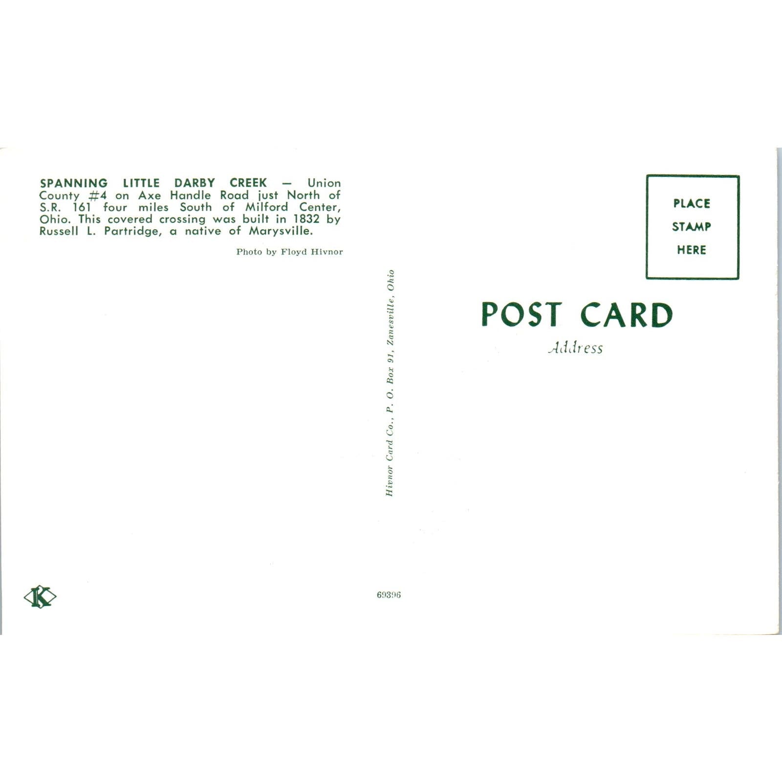 Spanning Little Darby Creek County #4 Milford Center OH Covered Bridge Postcard PB13