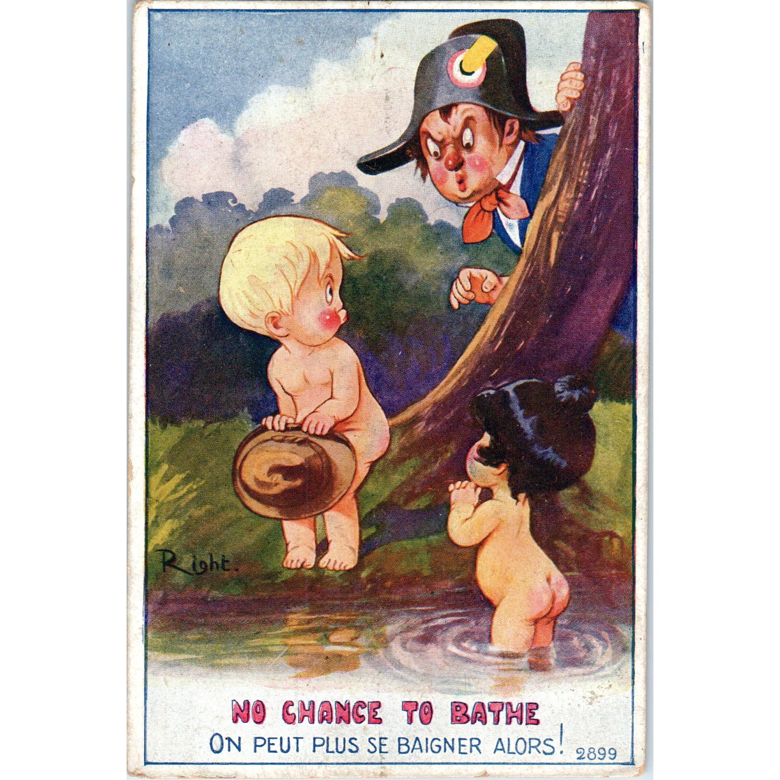 Little Kids Bathing Humor Cartoon Right French Original Postcard TK1-25