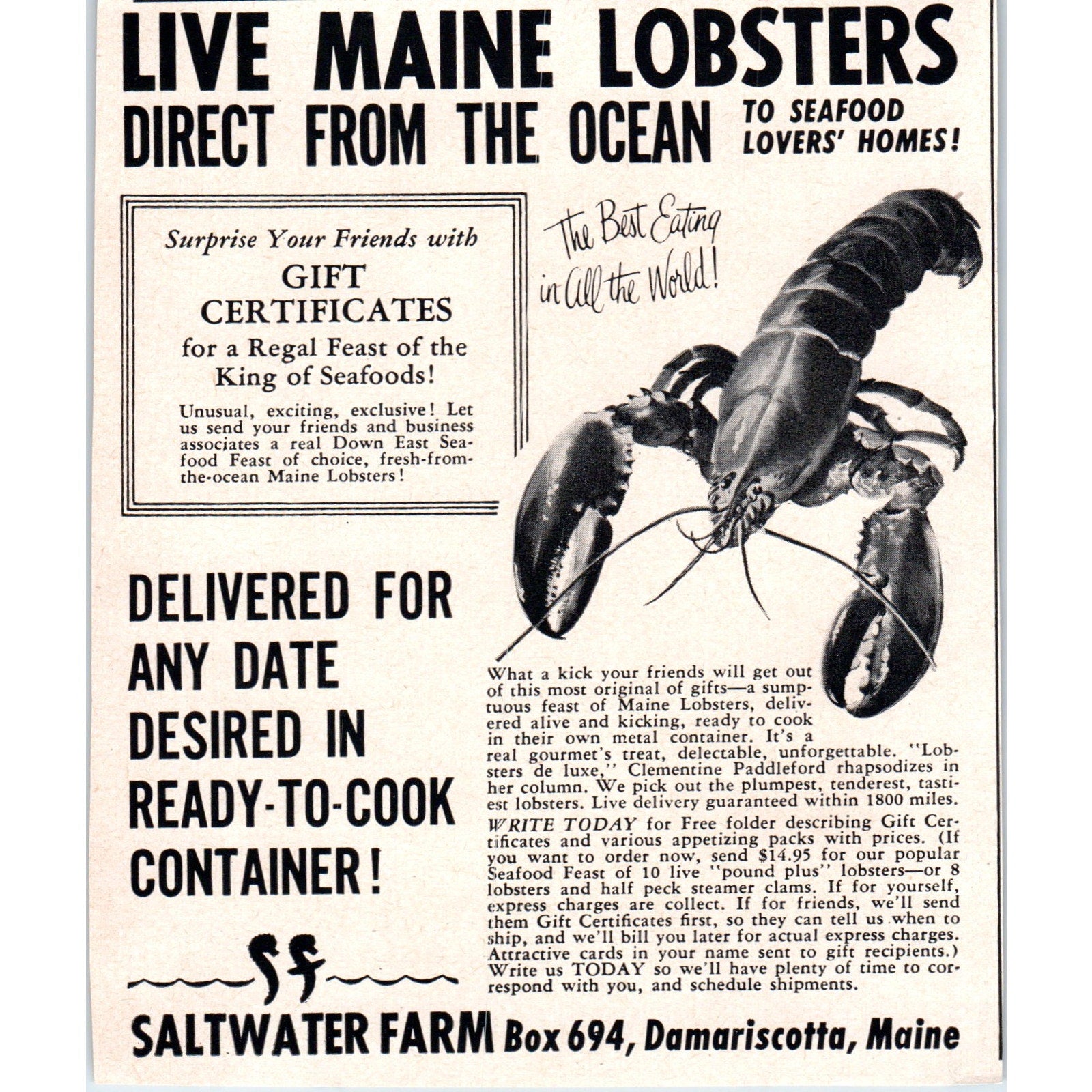 Live Maine Lobsters Saltwater Farm Damariscotta ME 1951 Magazine Ad AF1-MF1
