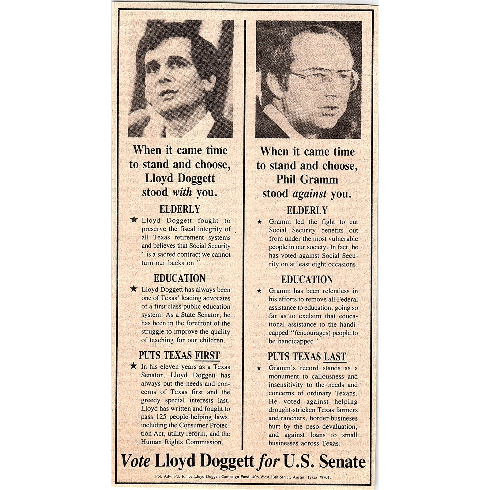Lloyd Doggett For US Senate Austin Texas 1984 Ad AF6-7