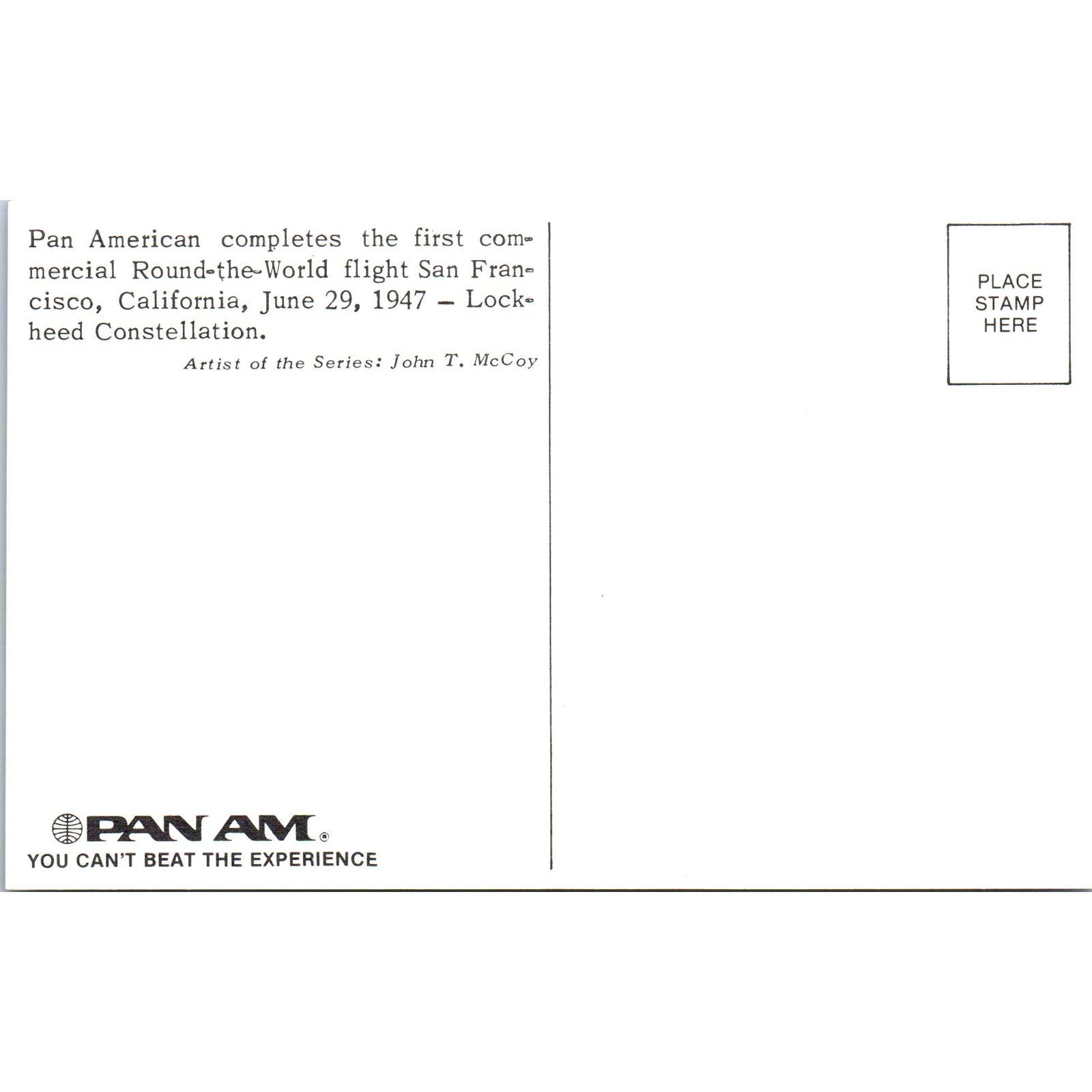 Lockheed Constellation Pan Am Airlines Illustration Vintage Postcard TG8-PC