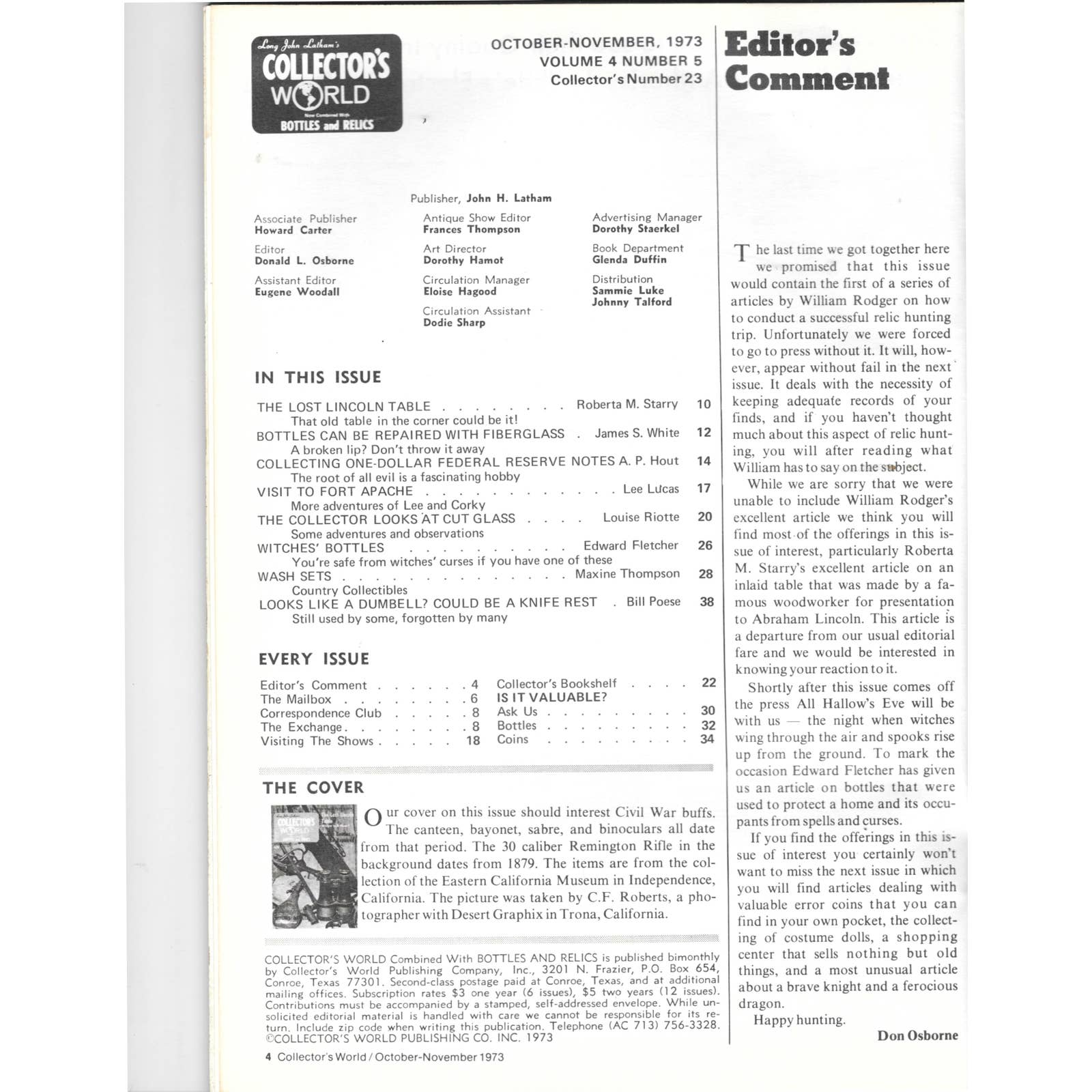 Long John Latham's Collector's World Bottles and Relics Magazine Oct 1973 M5