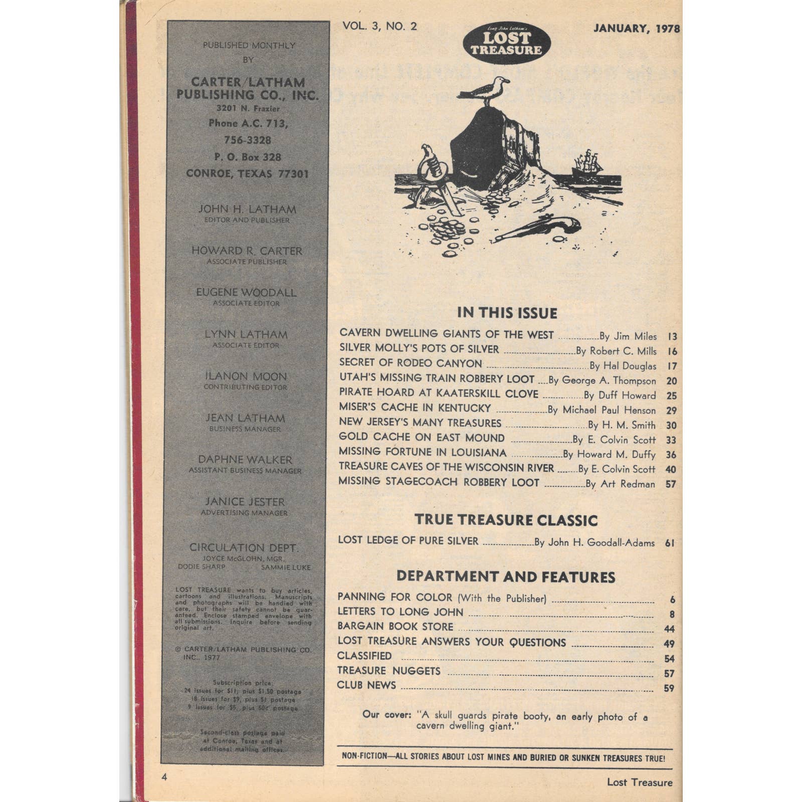 Long John Lathams Lost Treasure Magazine Lost Mines, Buried, Sunken Jan 1978 M1