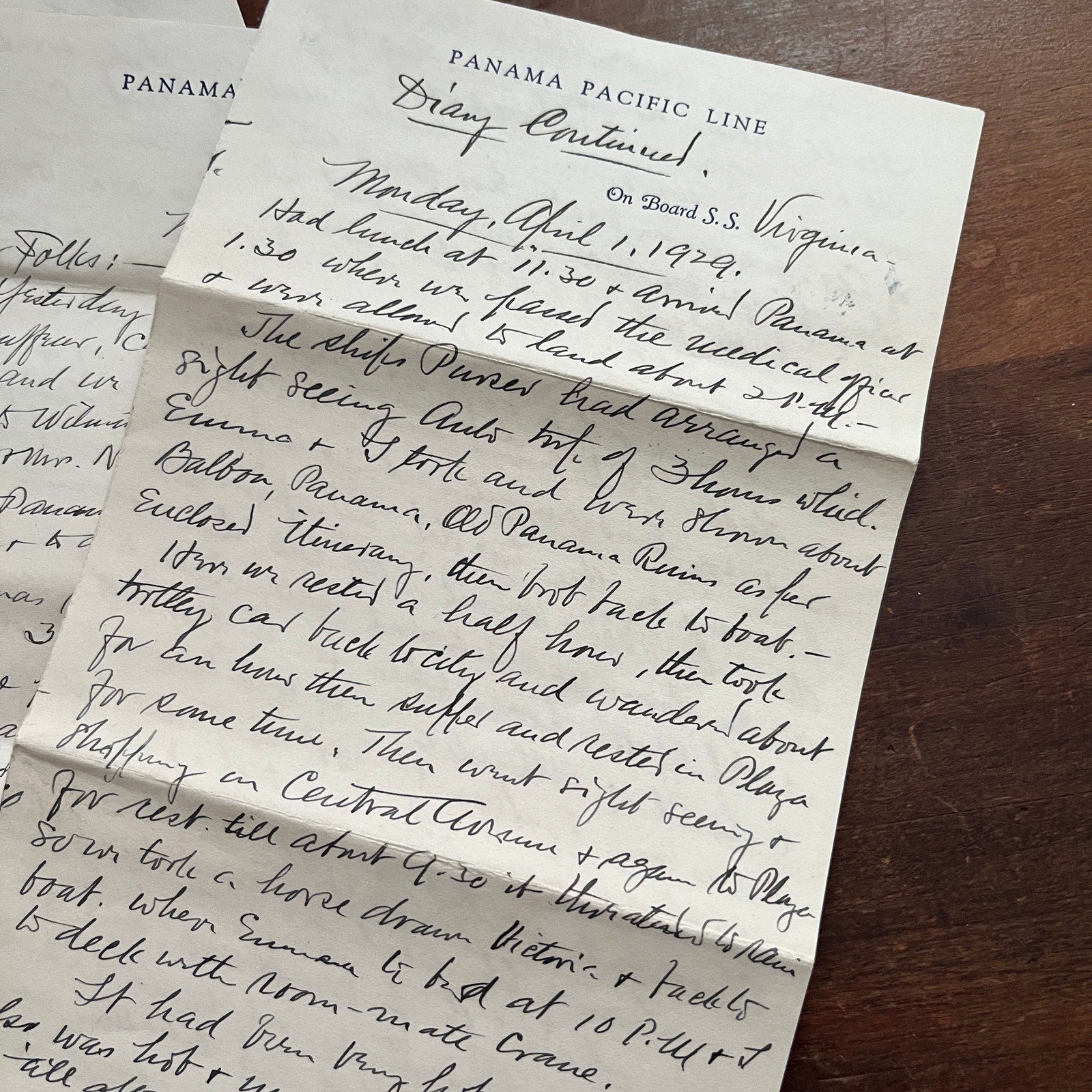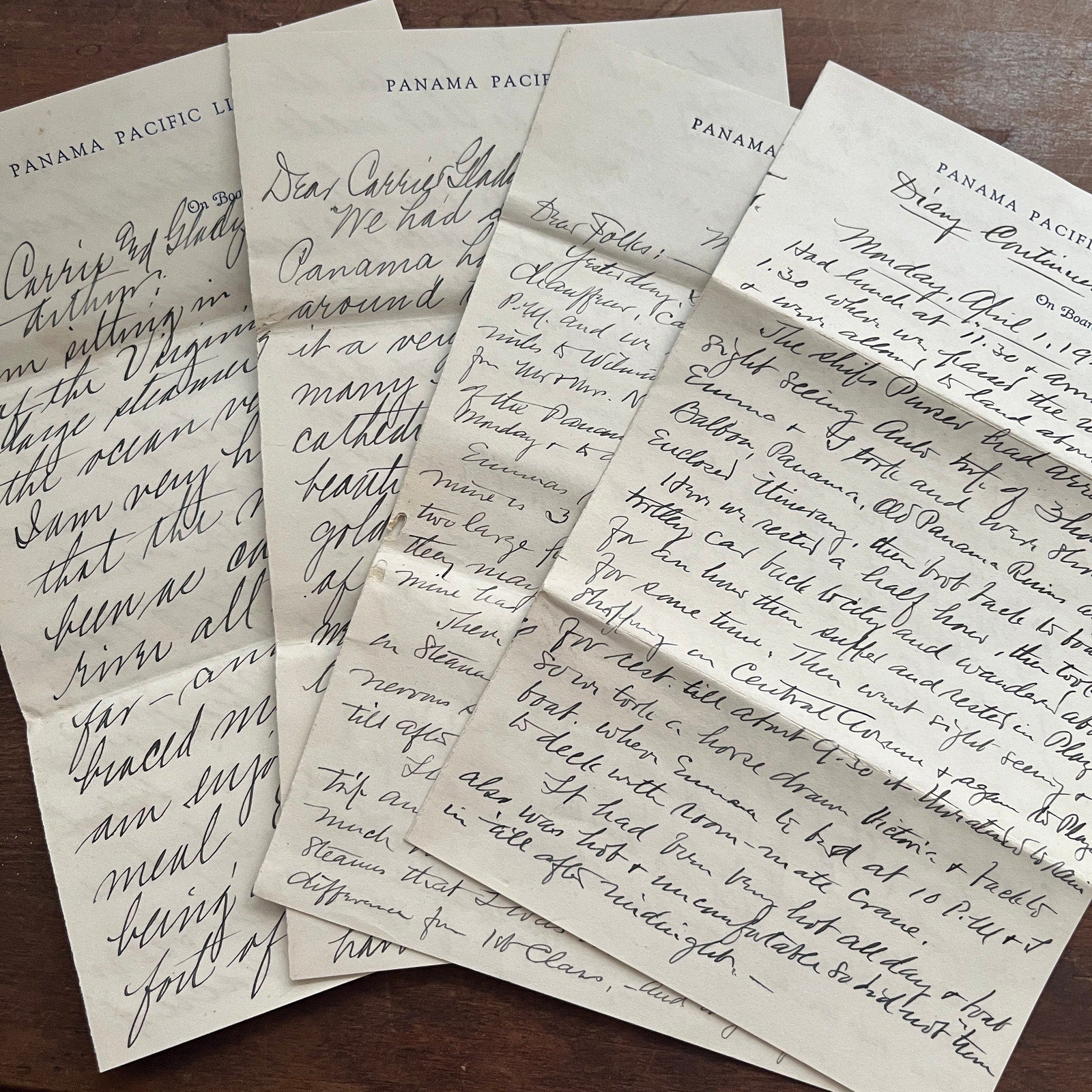 Lot of 4 Handwritten Letters Panama Pacific Lines SS Virginia Mar-Apr 1929 AF4