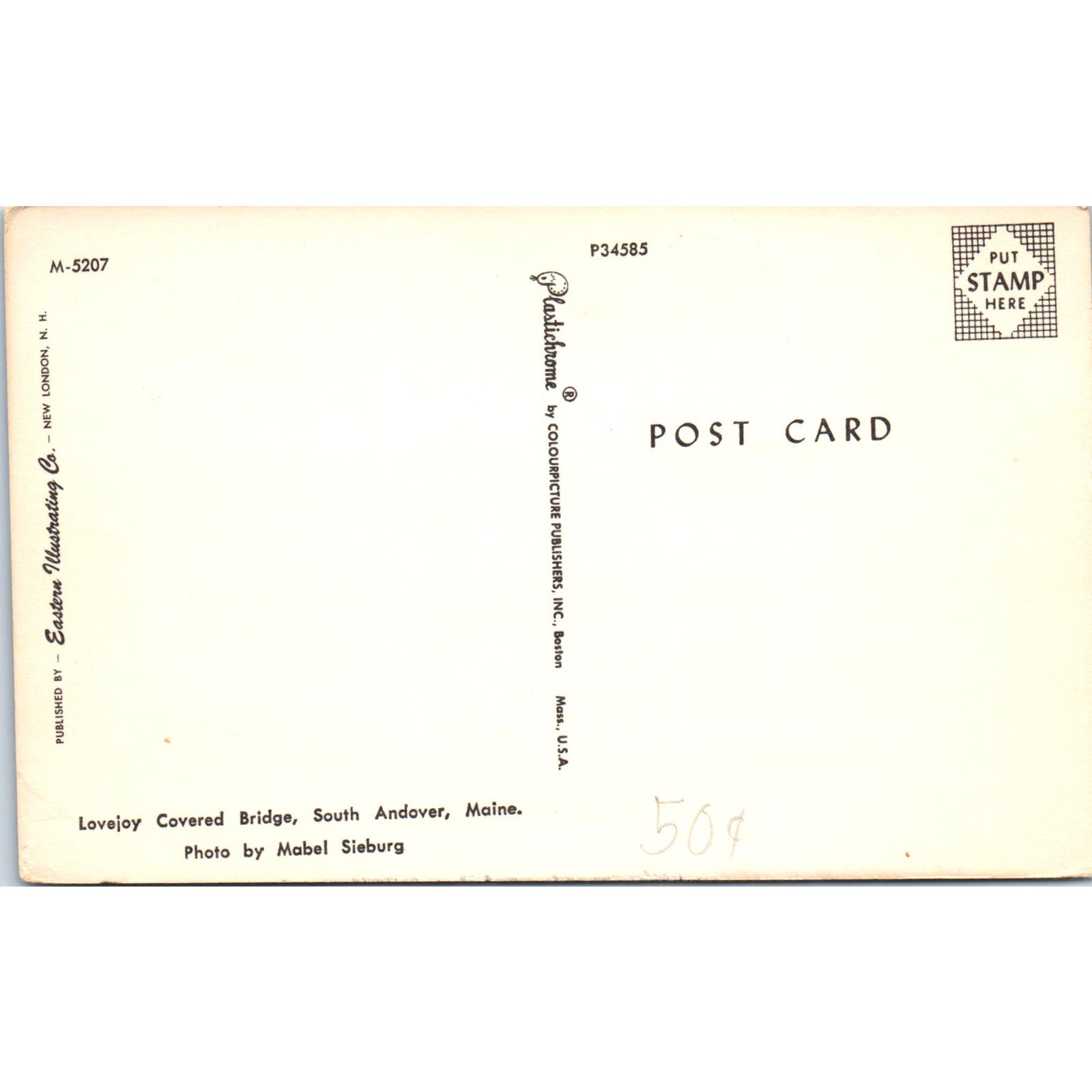 Lovejoy Covered Bridge South Andover ME Vintage Covered Bridge Postcard PD6