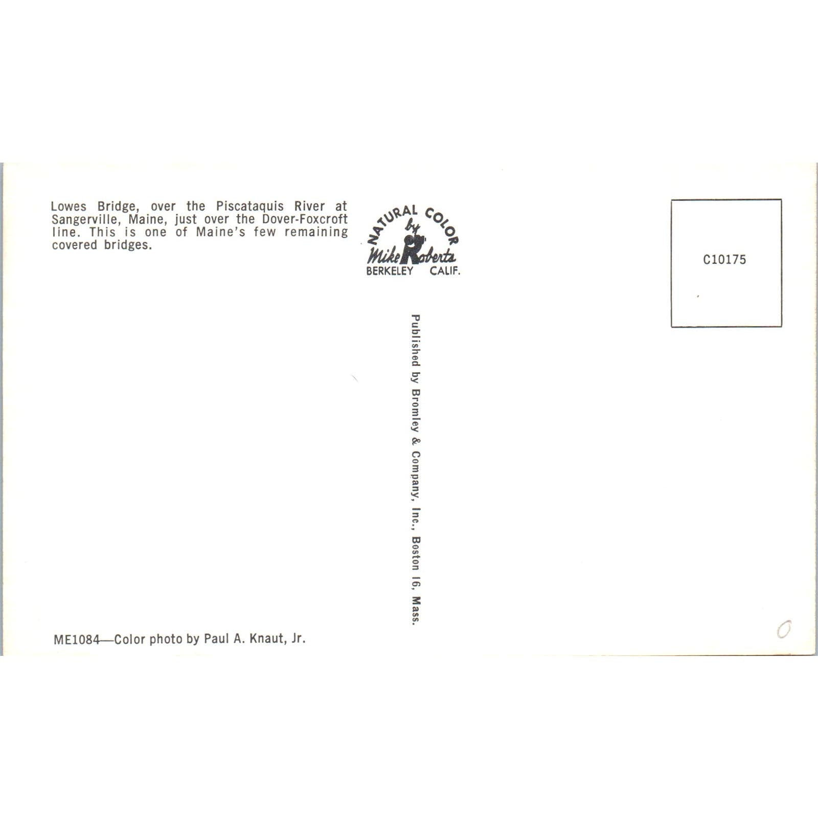 Lowes Bridge Piscataquis River Sangerville Maine Covered Bridge Postcard PB12