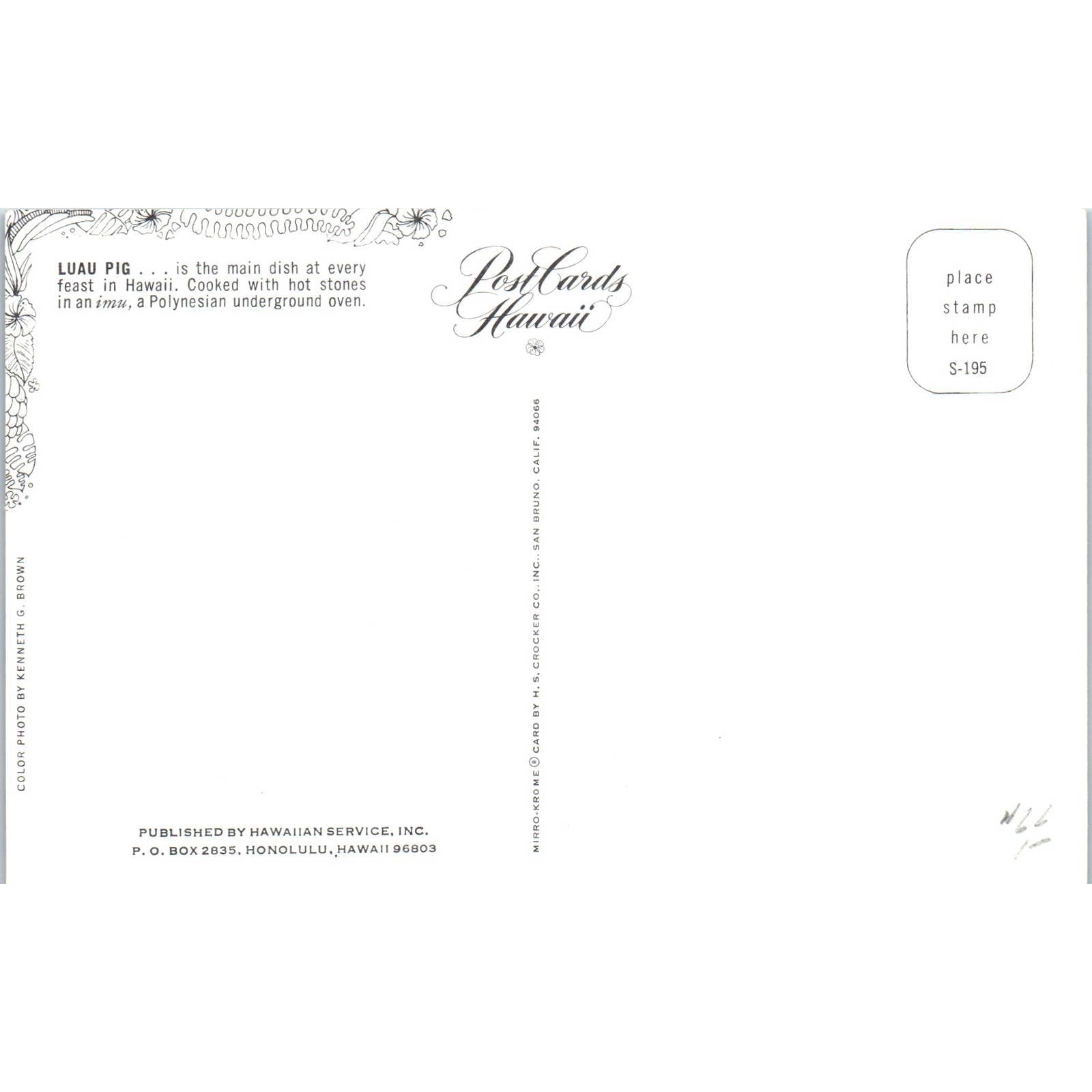 Luau Pig, Hawaii Original Postcard TK1-P13