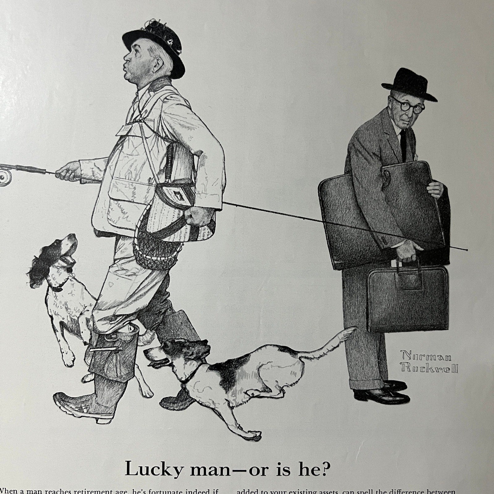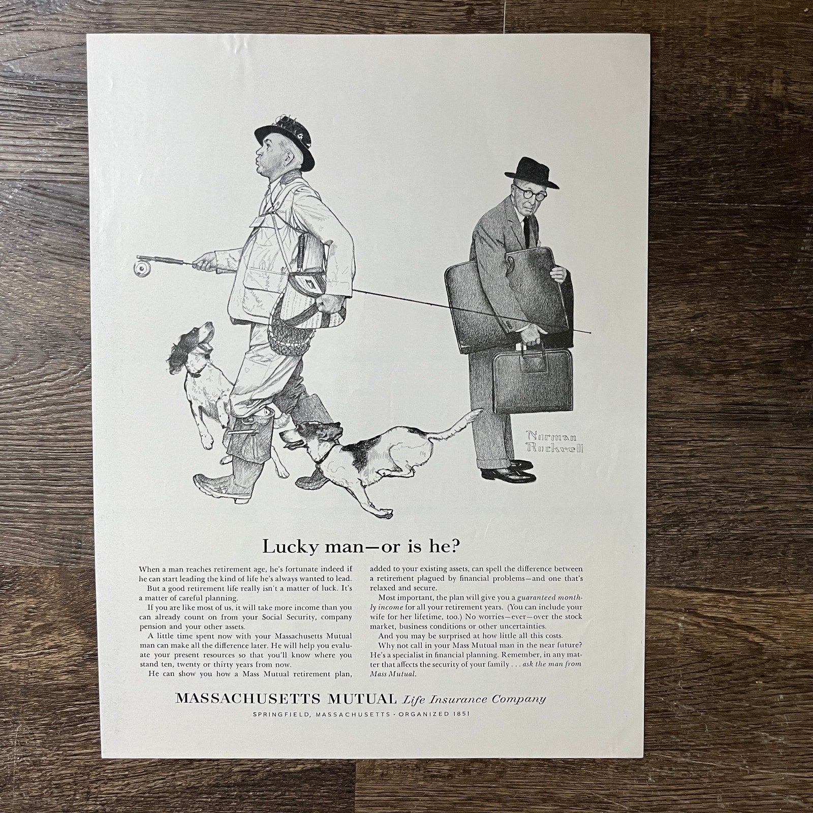 Lucky Man - Or Is He? Norman Rockwell MA Mutual Life Vintage Magazine Ad 10x14 V7
