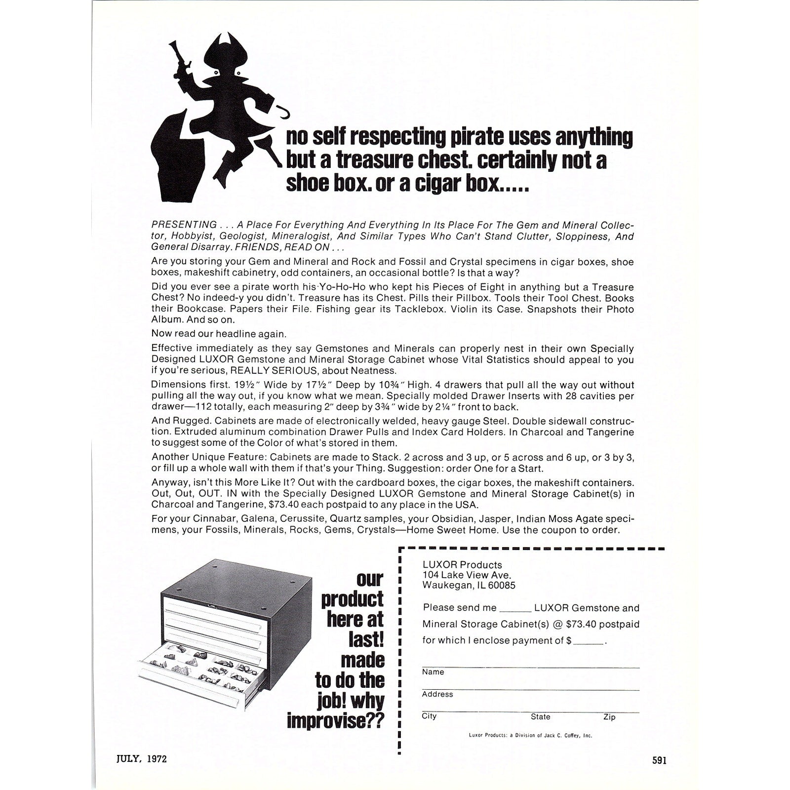 Luxor Products Gemstone & Mineral Storage Cabinet Waukegan IL 1972 Ad AF8-3
