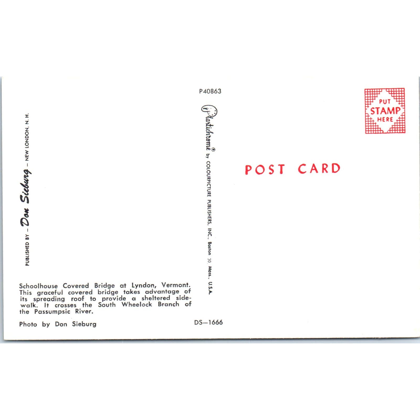 Lyndon Vermont Schoolhouse Covered Bridge Postcard PB11