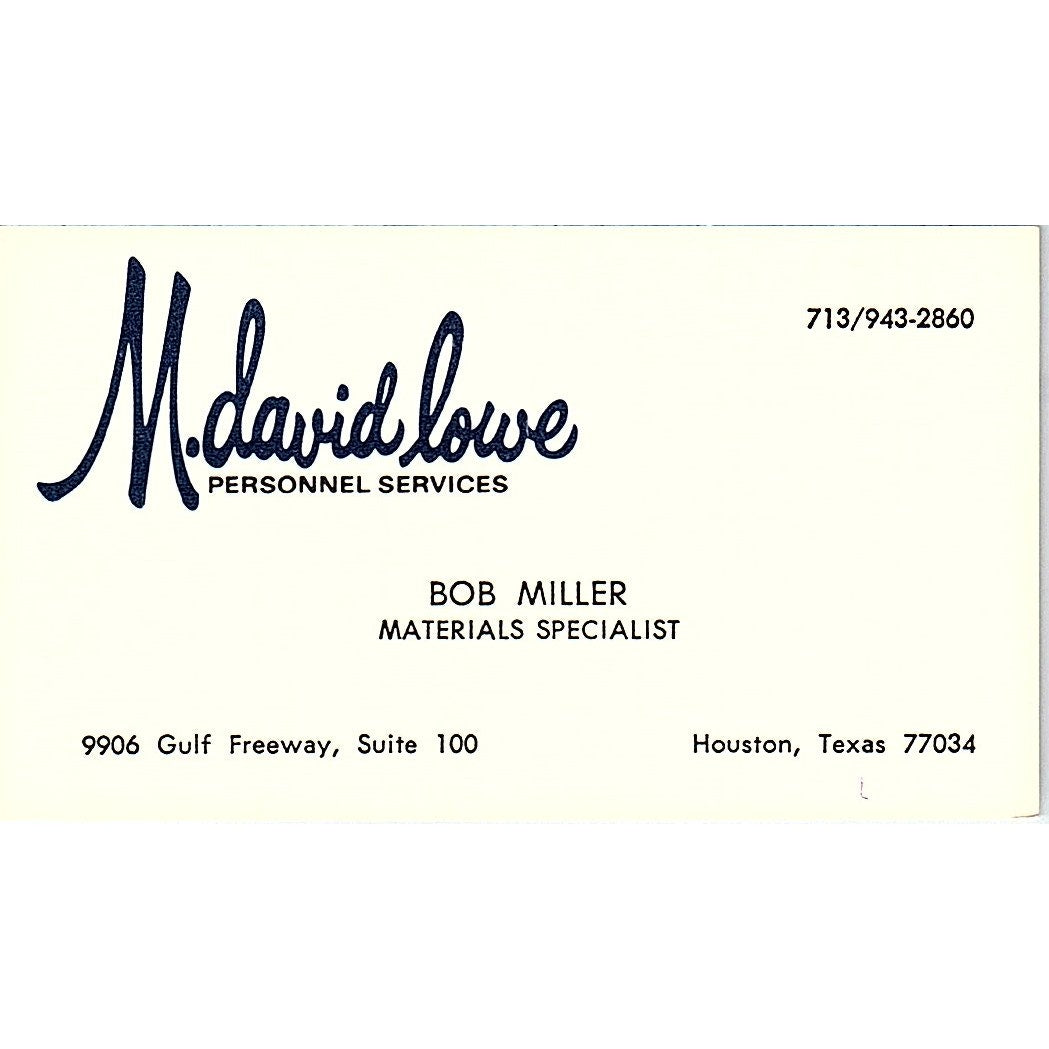 M. David Lowe Personnel Service Bob Miller Houston Texas Vintage Business Card SF3-B7