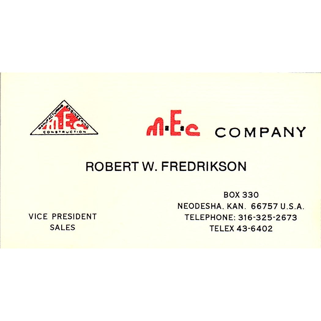 M.E.C. Company Robert W Fredrikson Neodesha KS Vintage Business Card SD9-B5