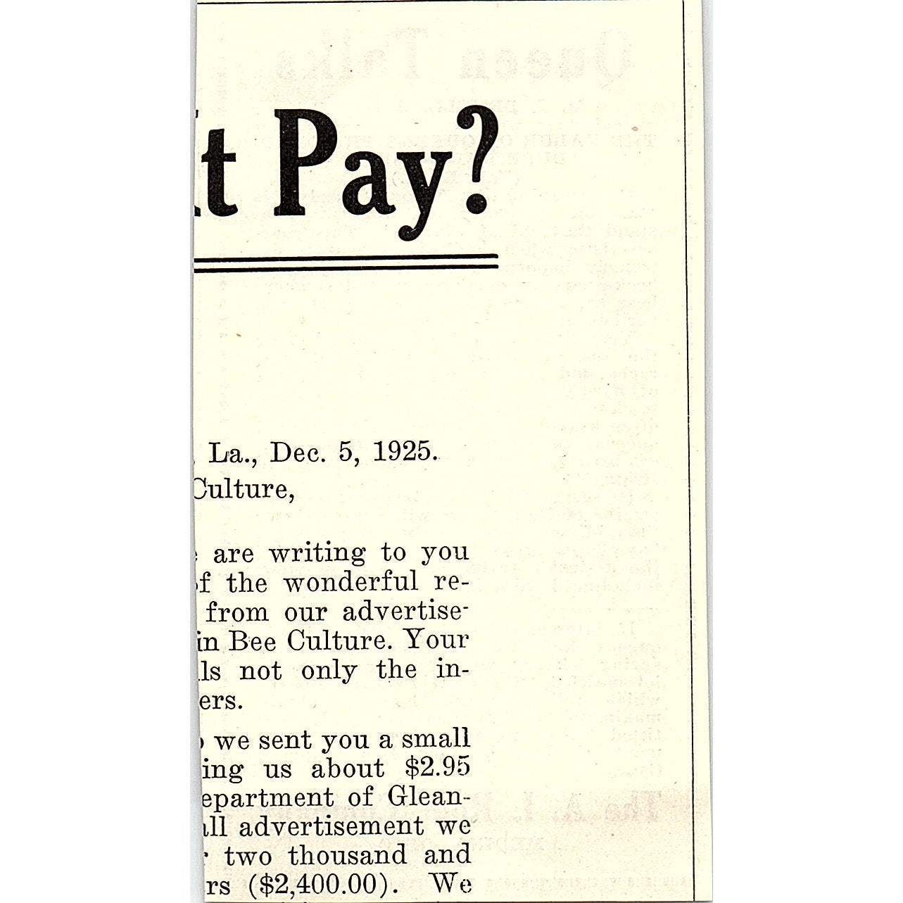 THIS IS A SMALL AD Measures Approx 2.5x4". Original piece taken from 1926 Gleanings in Bee Culture Magazine. May have blemishes you would expect from something this age. See pics for condition.