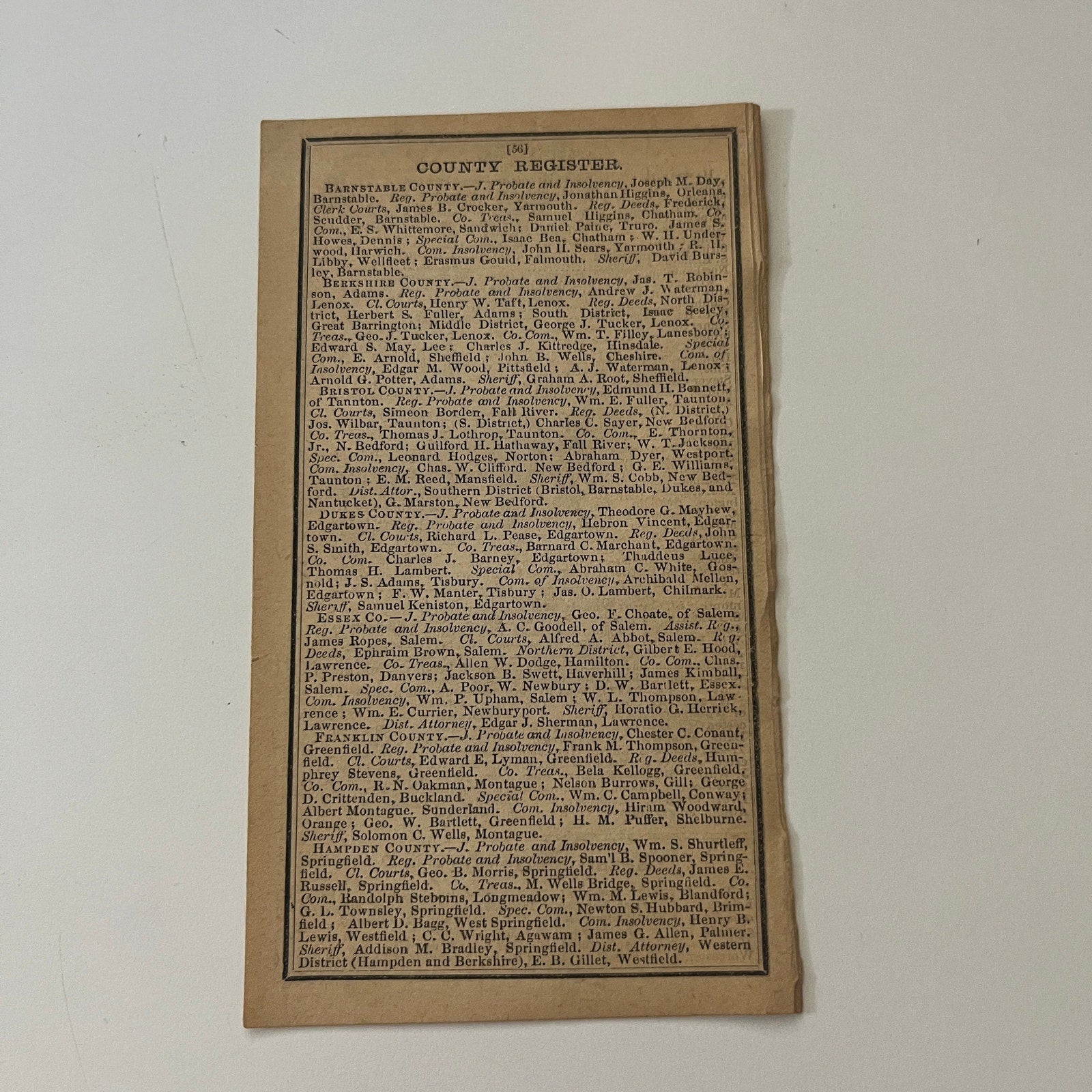 Mass State Police Soldiers' Messenger Corps Listings 1871 Boston Almanac Clipping SAI2-H4