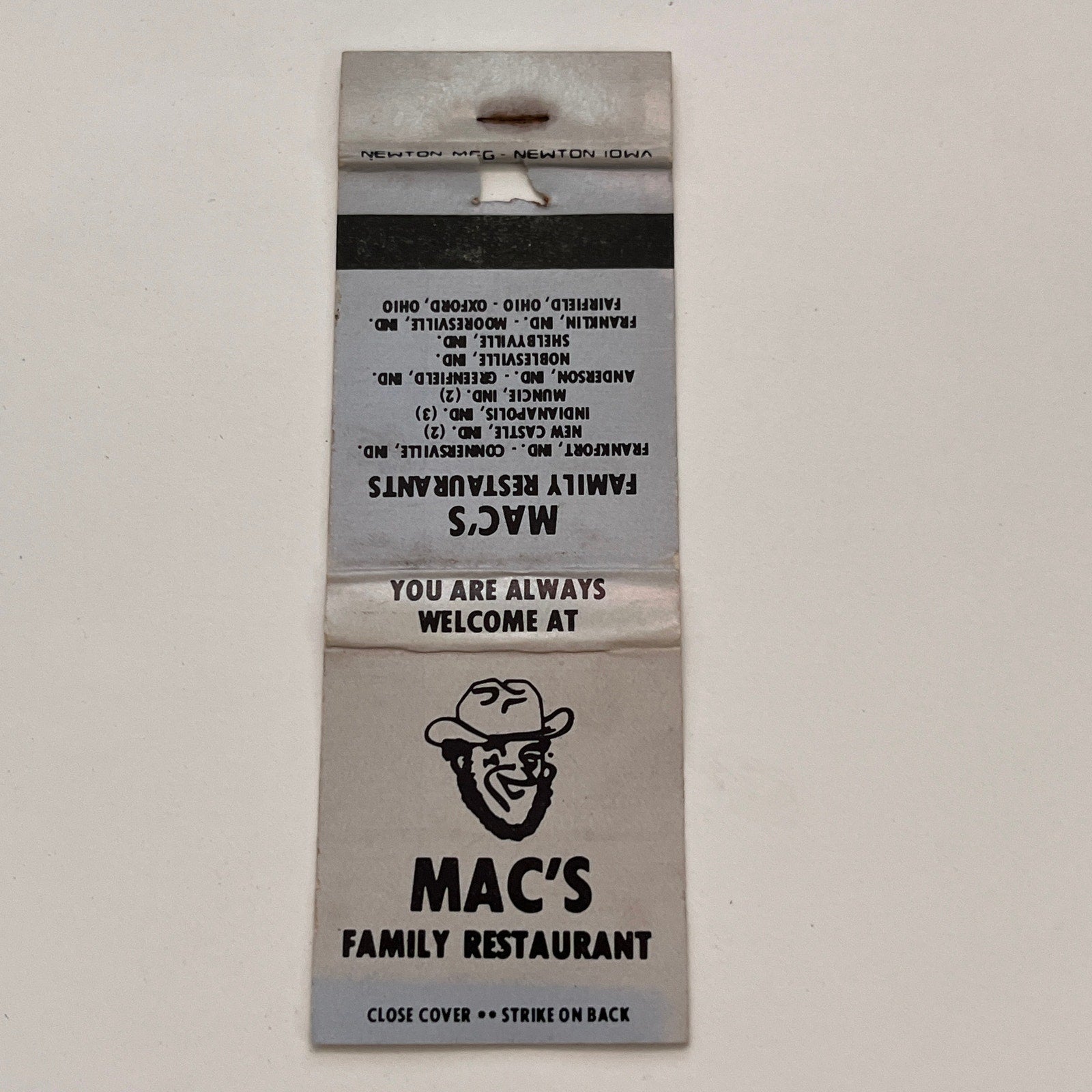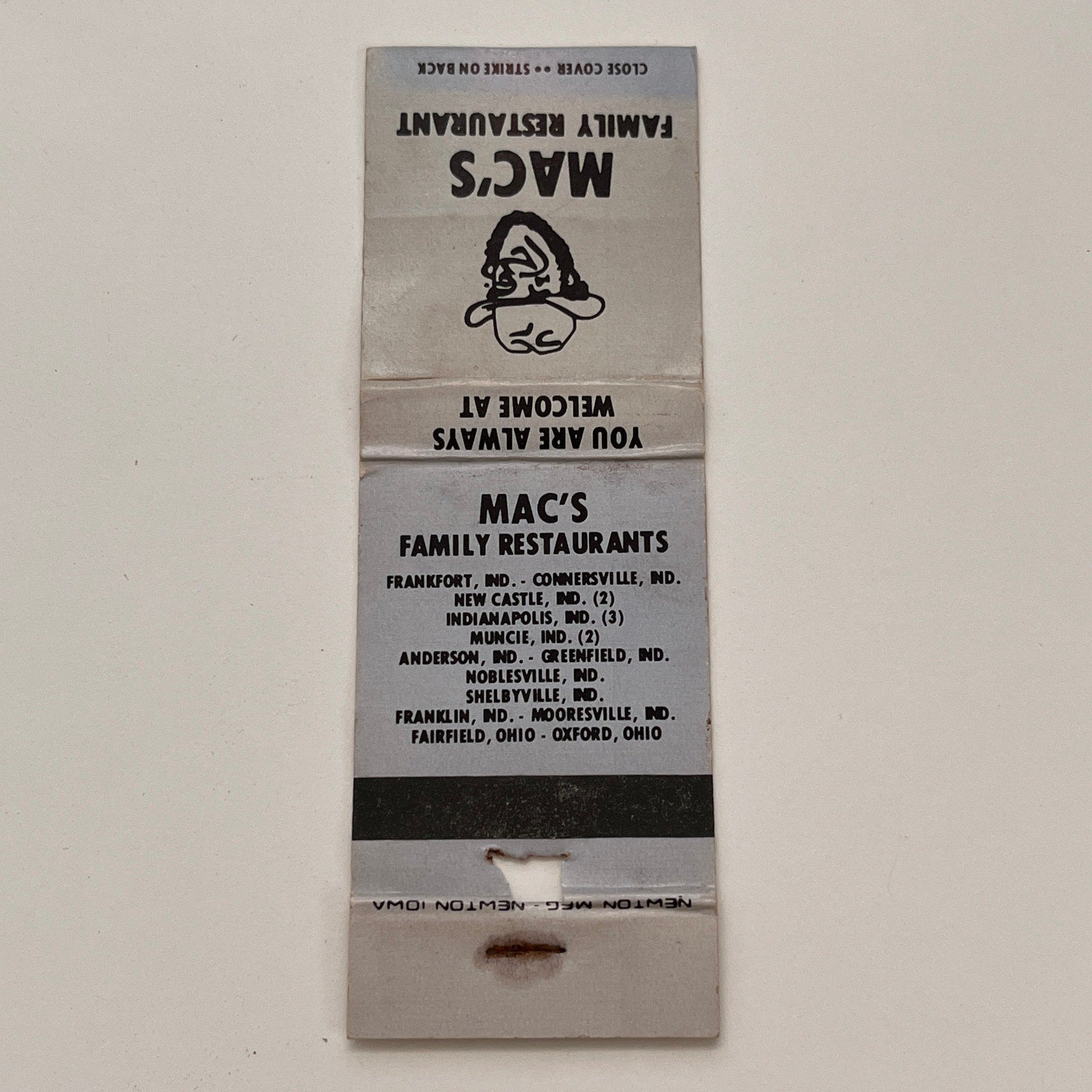 Mac's Family Restaurants Indiana Vintage Matchbook TB6-MB2-15