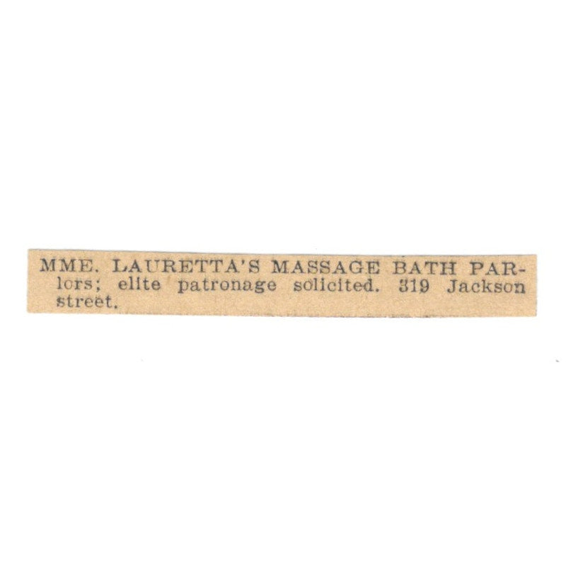 Madame Lauretta's Massage Bath Parlor St. Paul 1898 Newspaper Ad AF2-S2