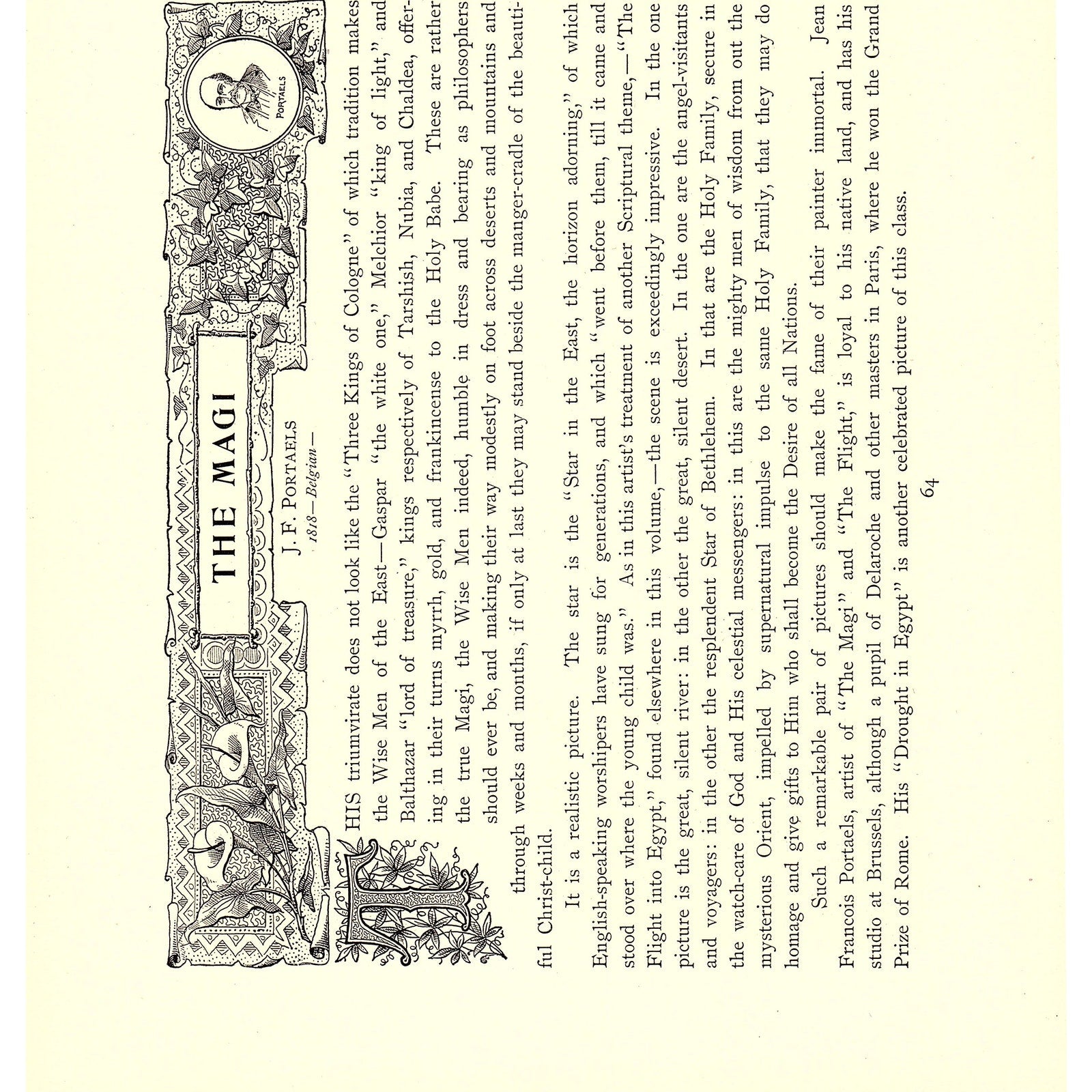 Measures approx 8.5x10.5. Original piece taken from the book - The Crown Jewels of Art by Franklin Edson Belden 1898. Reverse side has description of a different painting due to the layout of the book it was pulled from. There may be some light staining, tears, and/or other signs of wear and tear. See pics for condition.