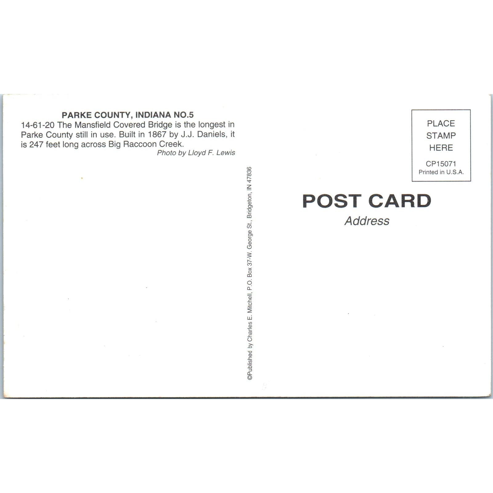 Mansfield Parke County 5 J.J. Daniels IN Vintage Covered Bridge Postcard PC15