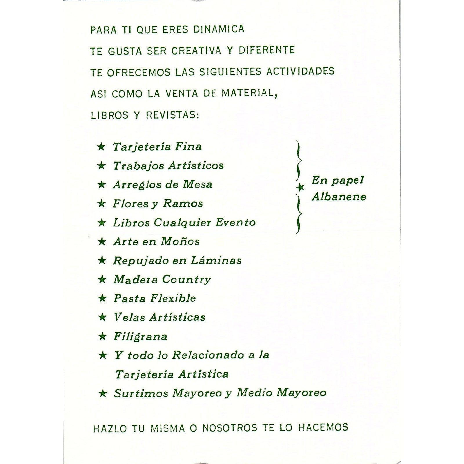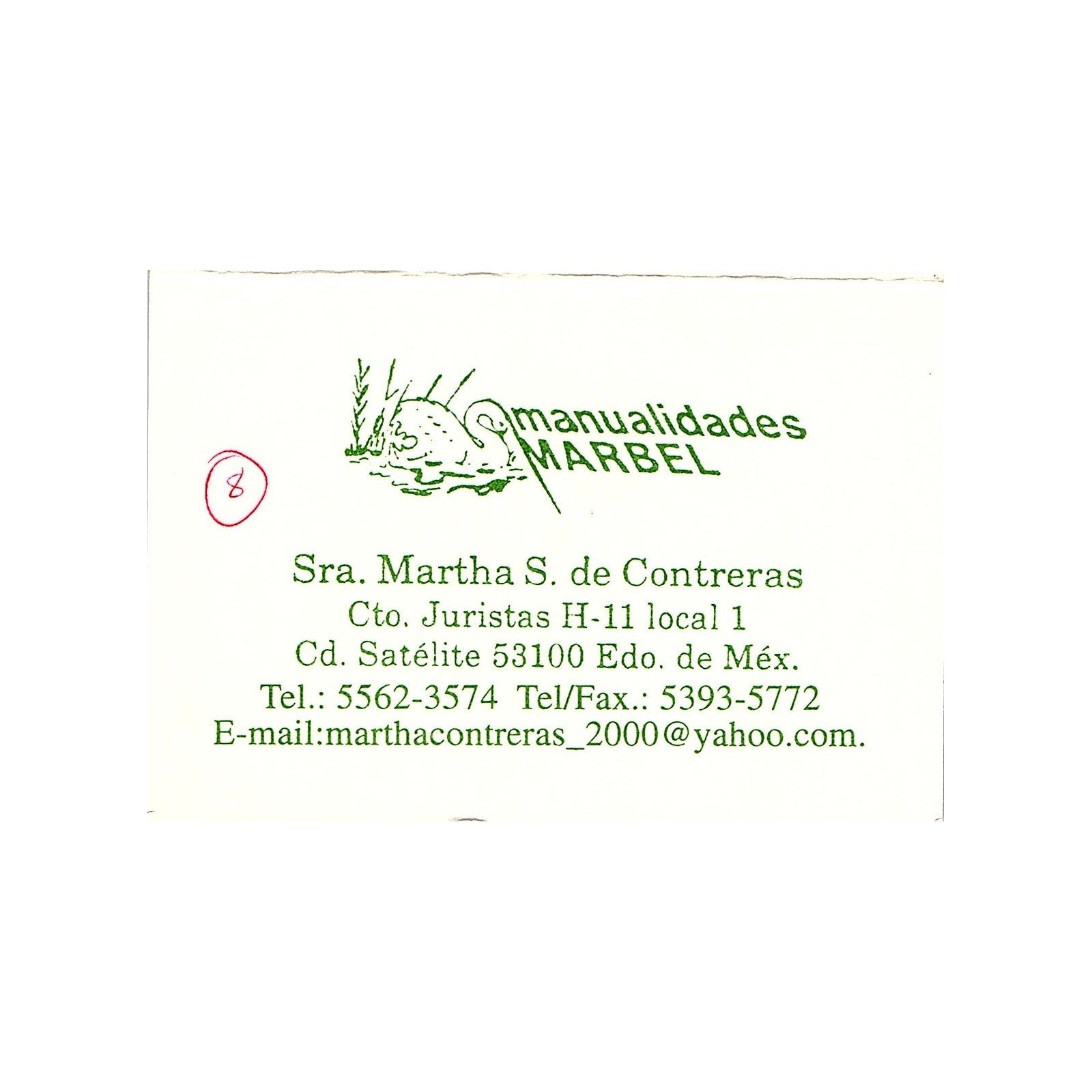 Martha S de Contreras Manualidades Marbel Mexico Vintage Business Card TH2-B2