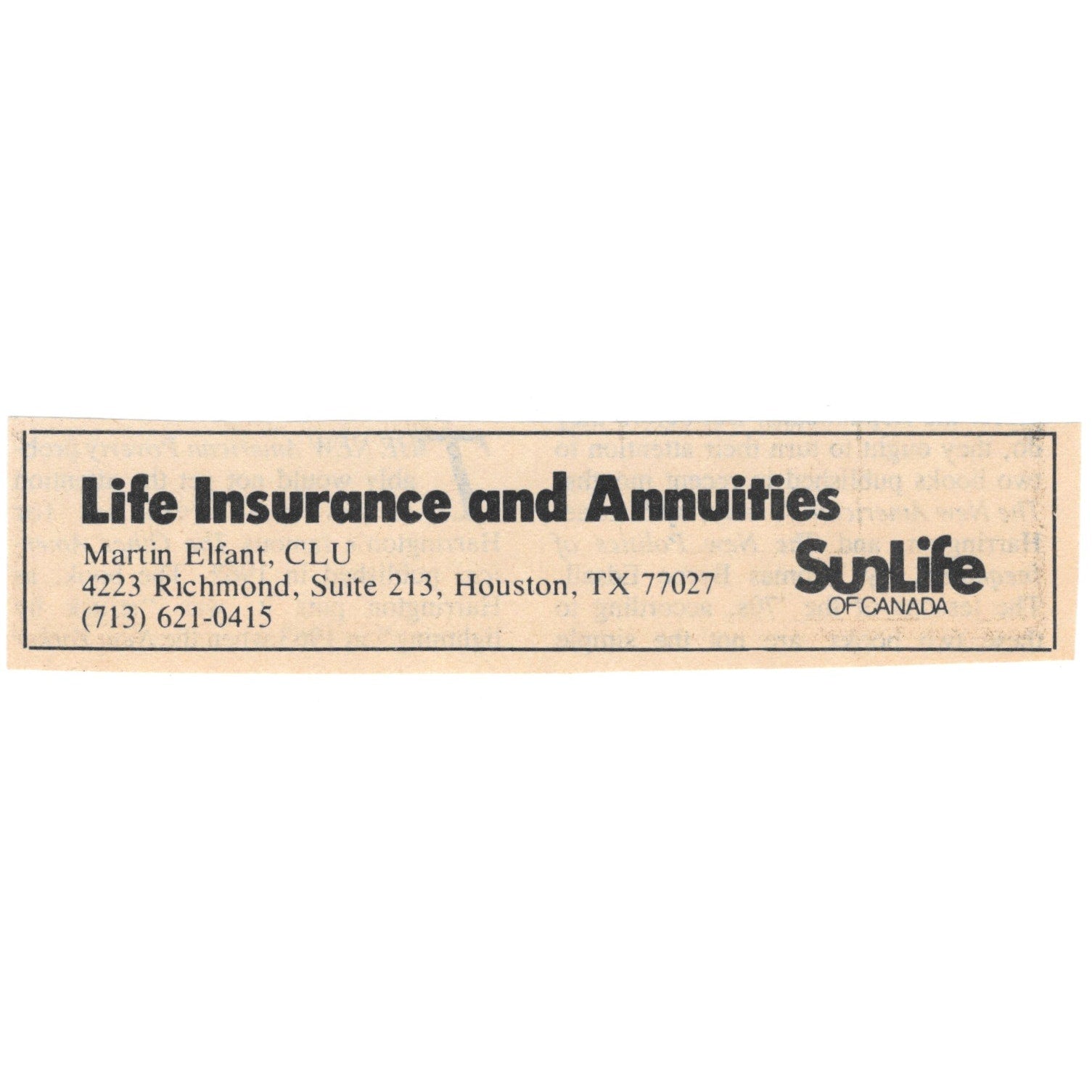 Martin Elfant CLU Sunlife of Canada Houston TX 1984 Ad AF6-M3