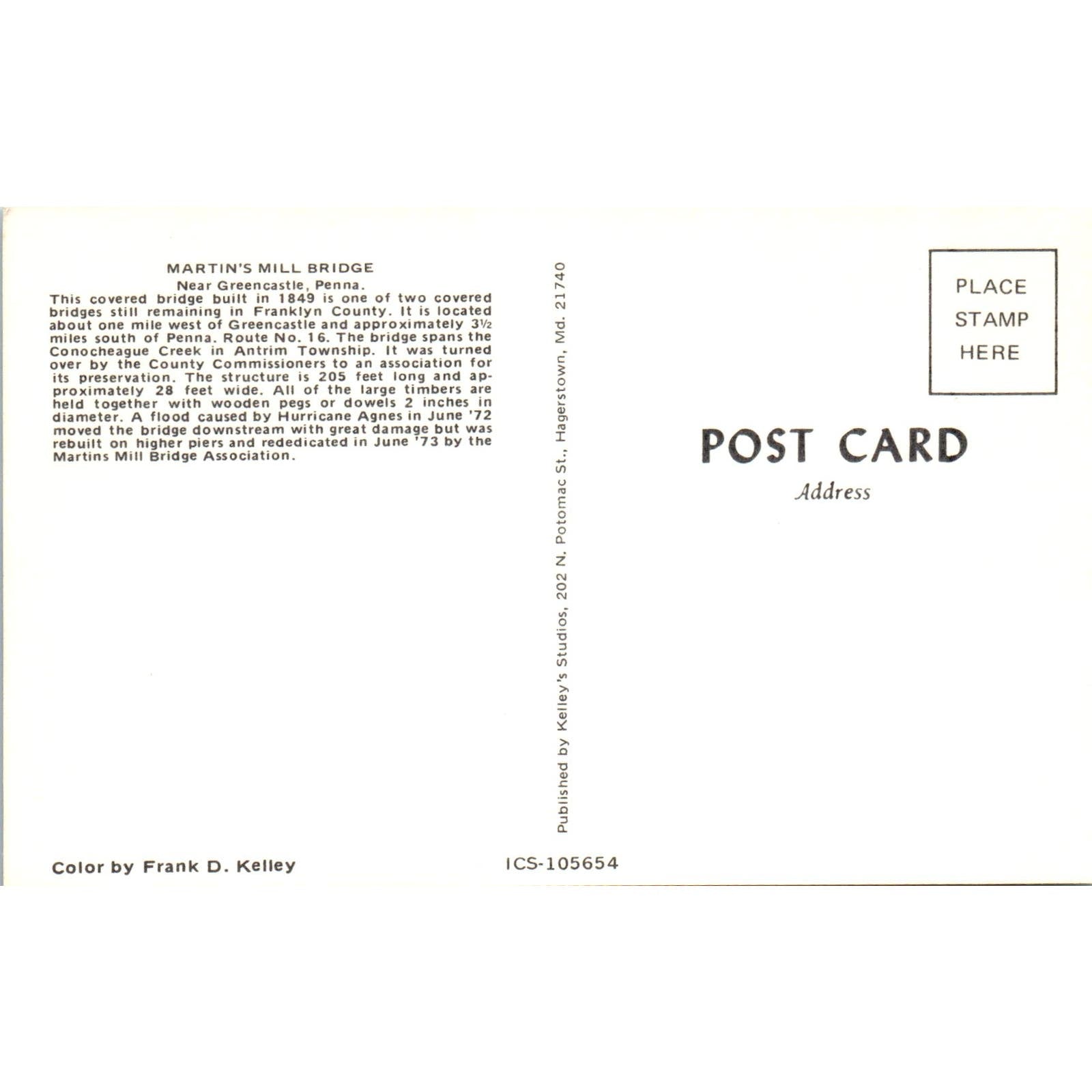 Martin's Mill Bridge Greencastle PA Vintage Covered Bridge Postcard PD3